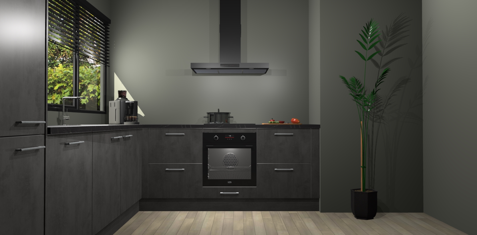 Met een modern, tijdloos design en ruime opslagruimte, zult u zich in no-time thuis voelen in uw nieuwe keuken. Uw leven wordt eenvoudiger met de soft-close deuren die voor het ultieme stille comfort zorgen - geen geluid dat u stoort terwijl u kookt. Ook is de keuken voorzien van 5 ingebouwde apparaten: een oven, inductie kookplaat, afzuigkap, vaatwasser en koelkast. Deze kunnen gemakkelijk na bestelling worden bijgewerkt naar AEG - waardoor uw luxe ervaring compleet is.