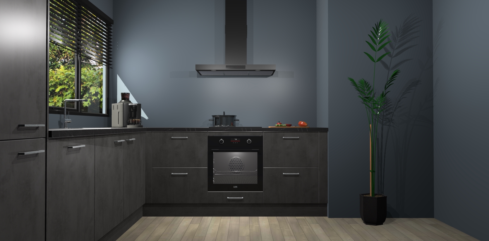 Met een modern, tijdloos design en ruime opslagruimte, zult u zich in no-time thuis voelen in uw nieuwe keuken. Uw leven wordt eenvoudiger met de soft-close deuren die voor het ultieme stille comfort zorgen - geen geluid dat u stoort terwijl u kookt. Ook is de keuken voorzien van 5 ingebouwde apparaten: een oven, inductie kookplaat, afzuigkap, vaatwasser en koelkast. Deze kunnen gemakkelijk na bestelling worden bijgewerkt naar AEG - waardoor uw luxe ervaring compleet is.