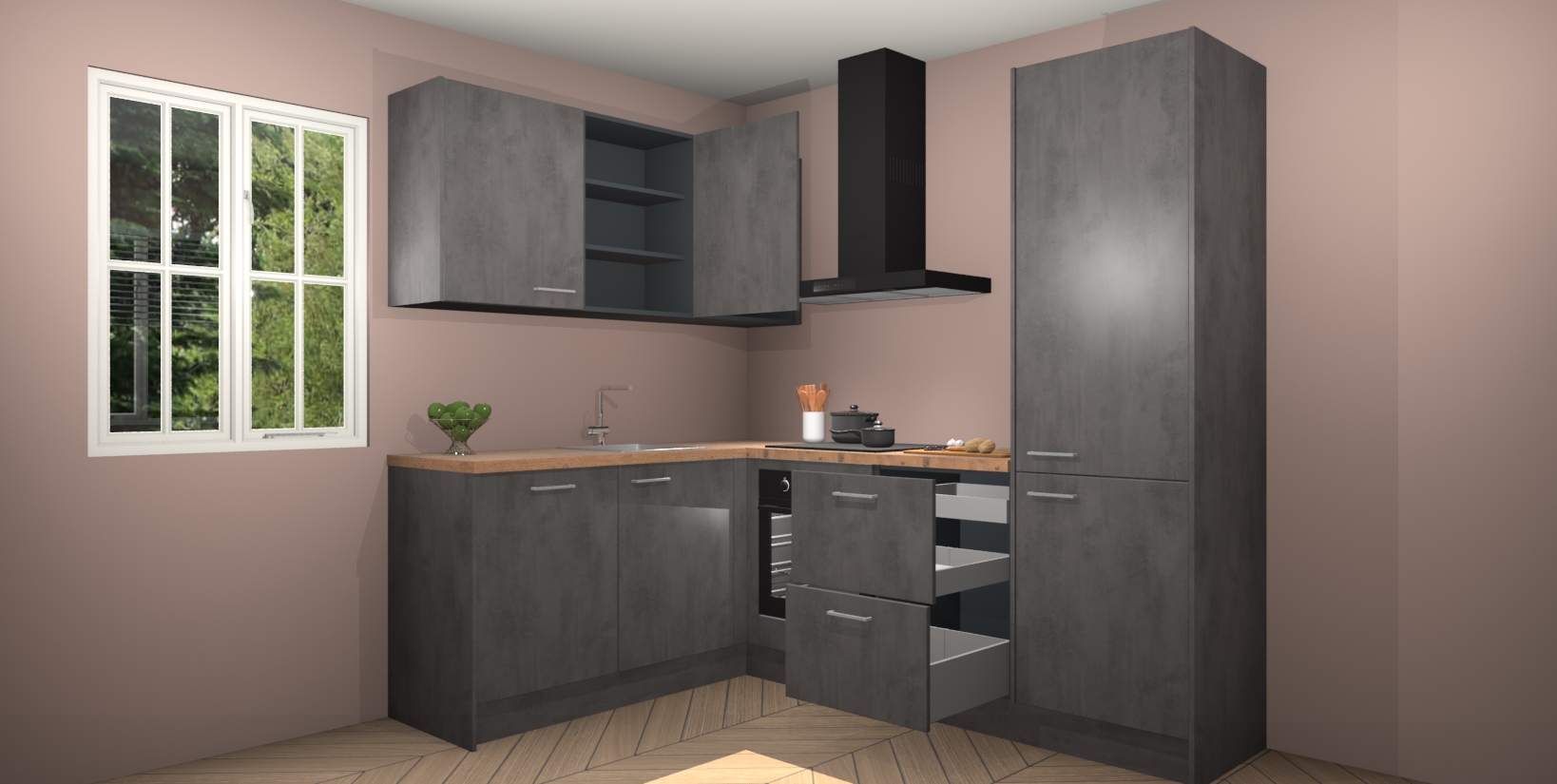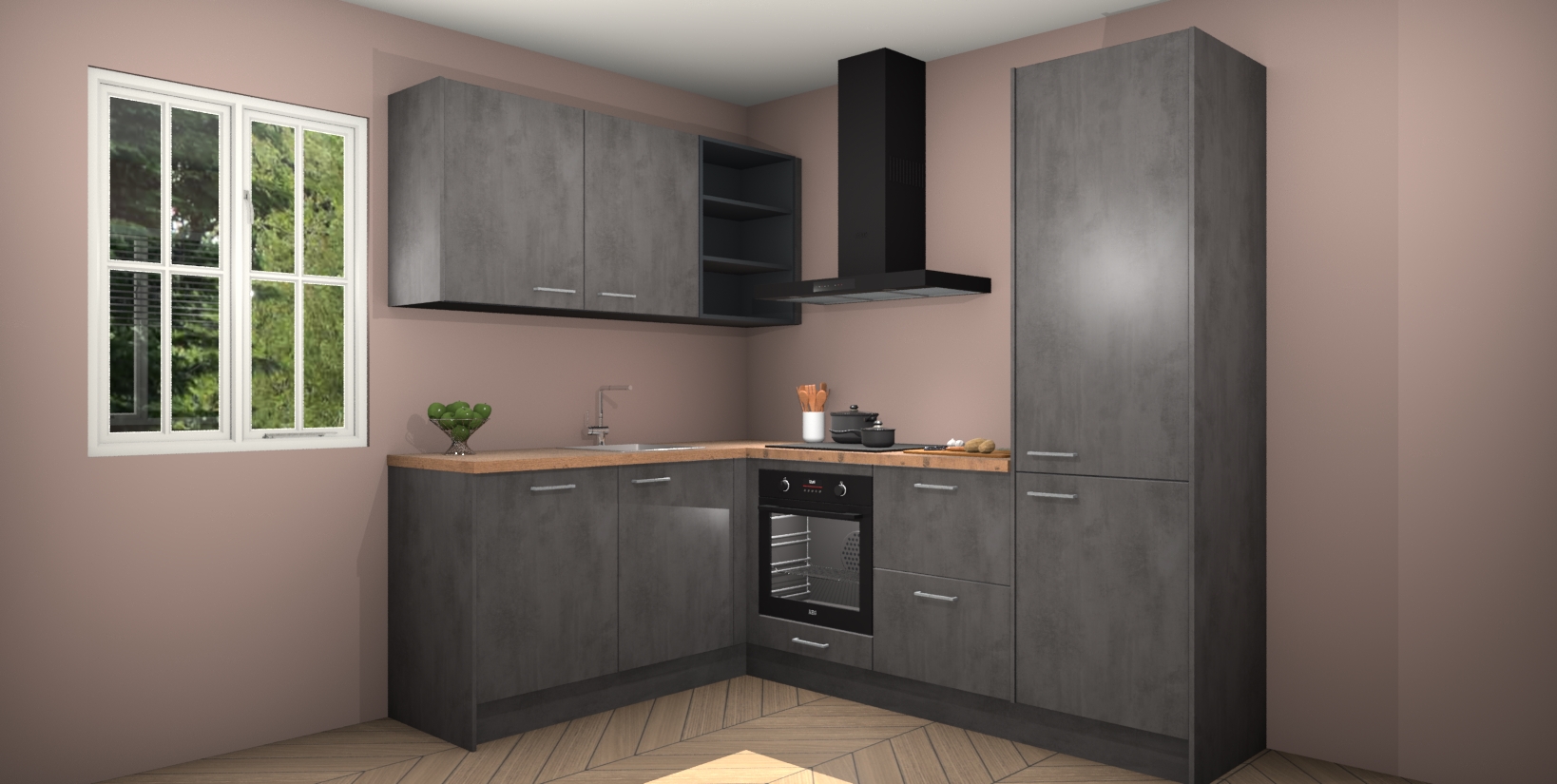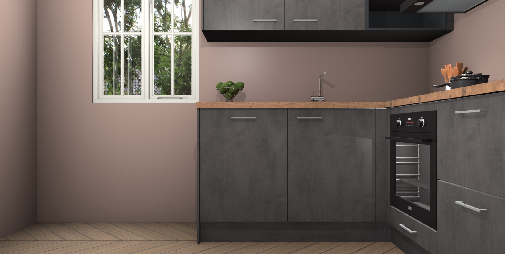 Maak kennis met de Beton Antraciet keuken Boekarest, een moderne hoekkeuken waar al uw vrienden en familie jaloers op zullen zijn! Het verbluffende mooie ontwerp past in elk interieur en is een ideale keuze voor wie op zoek is naar een klassieke, maar verfijnde look.