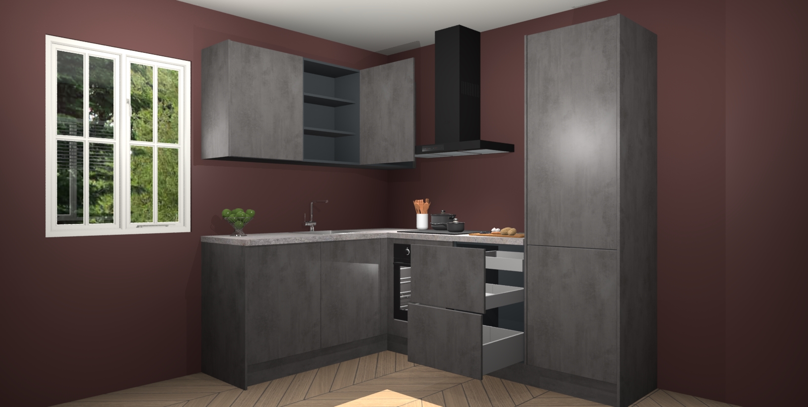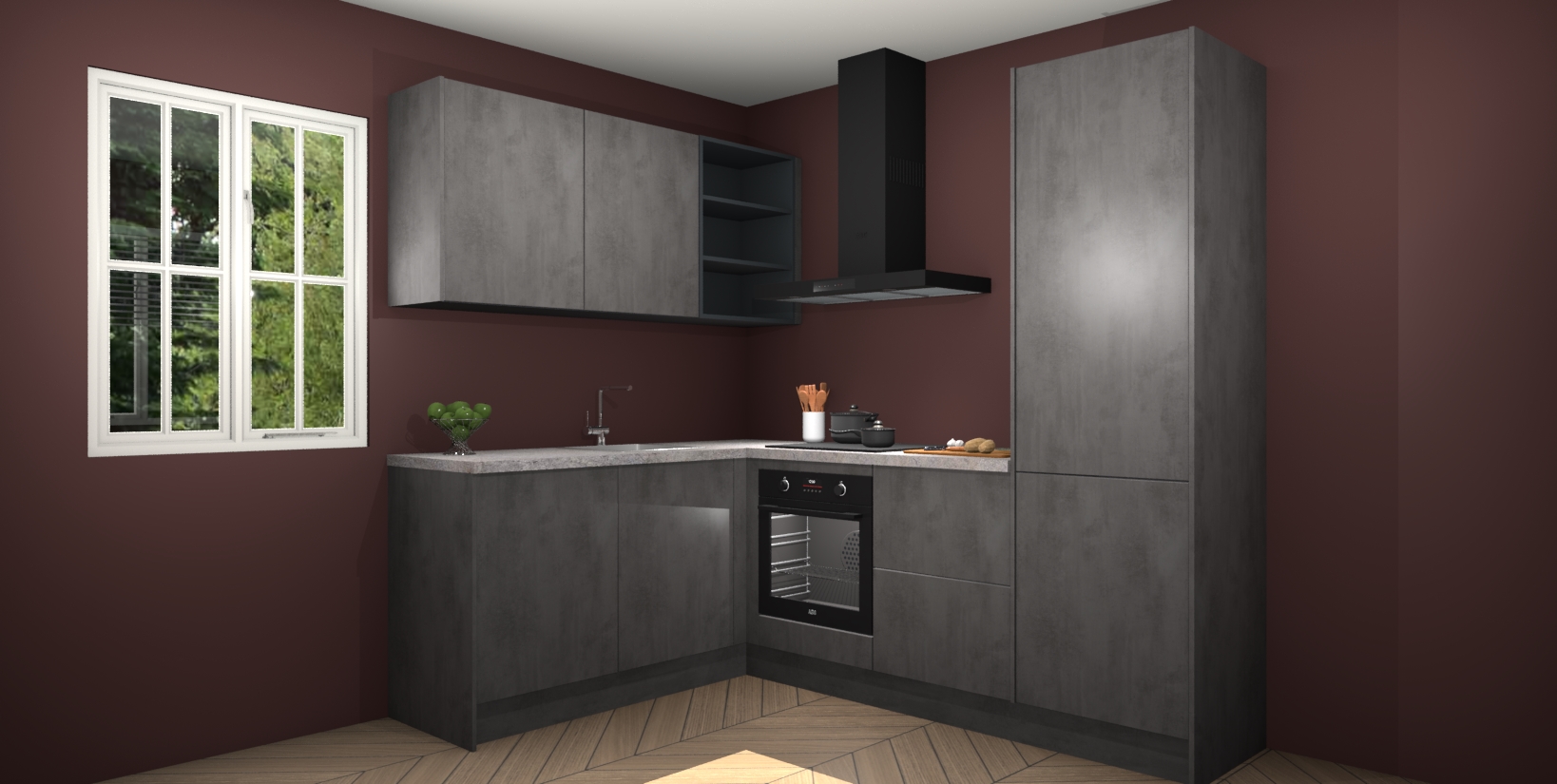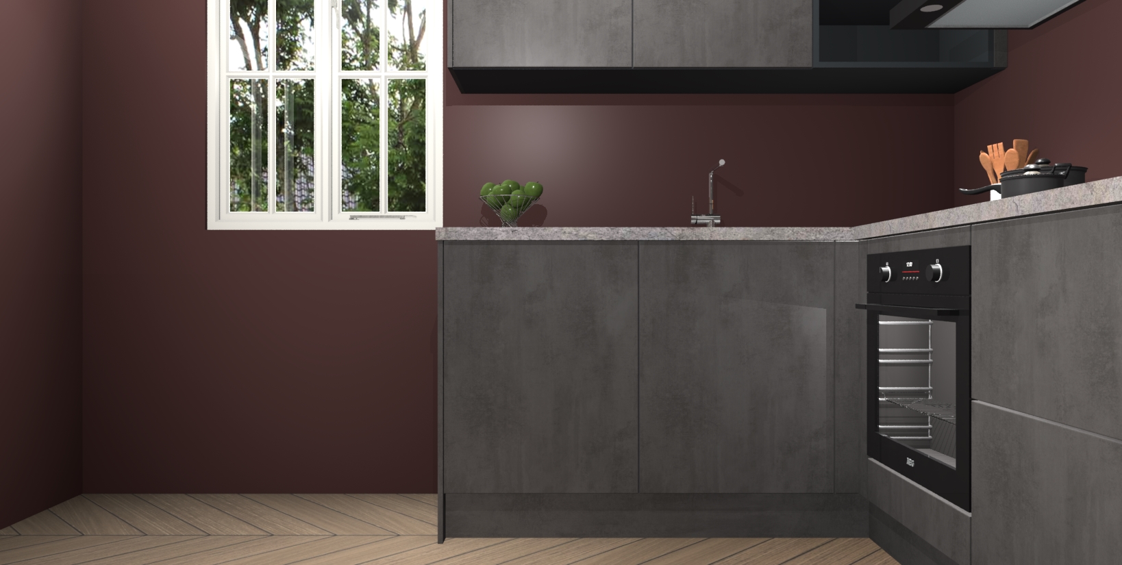 Maak kennis met de Beton Antraciet keuken Boekarest, een moderne hoekkeuken waar al uw vrienden en familie jaloers op zullen zijn! Het verbluffende mooie ontwerp past in elk interieur en is een ideale keuze voor wie op zoek is naar een klassieke, maar verfijnde look.