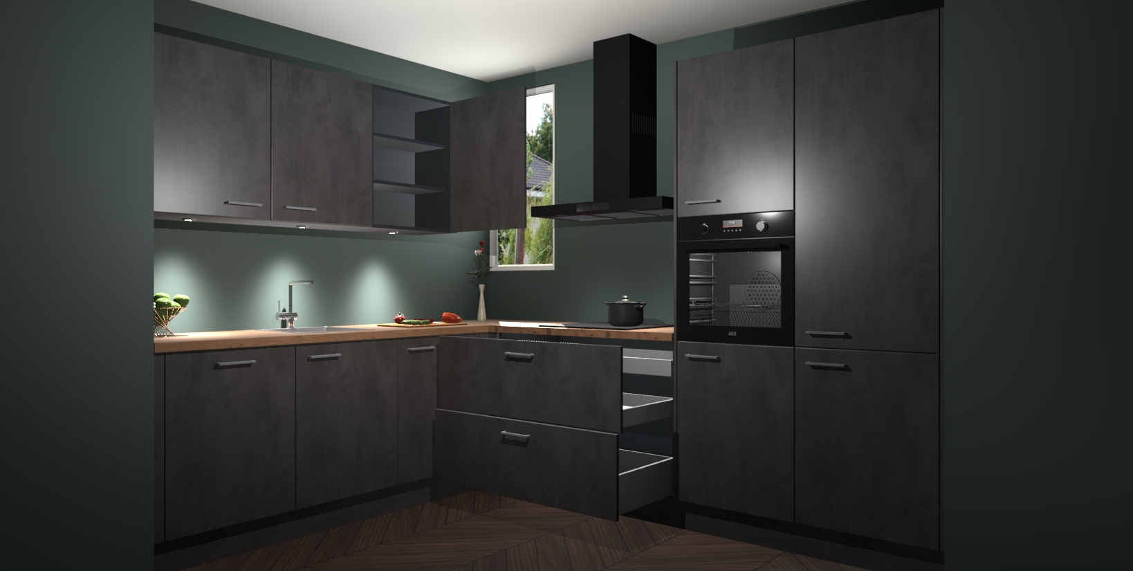 In deze box zijn alle kleuren verzameld van de deuren en werkbladen. Vraag de gratis kleurenbox aan en kijk thuis rustig verder!