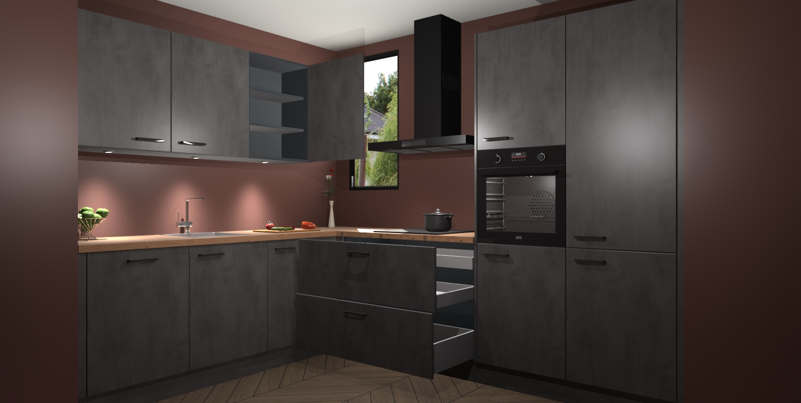 Inclusief plinten, stelpoten en werkblad