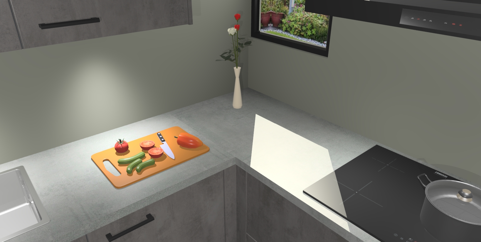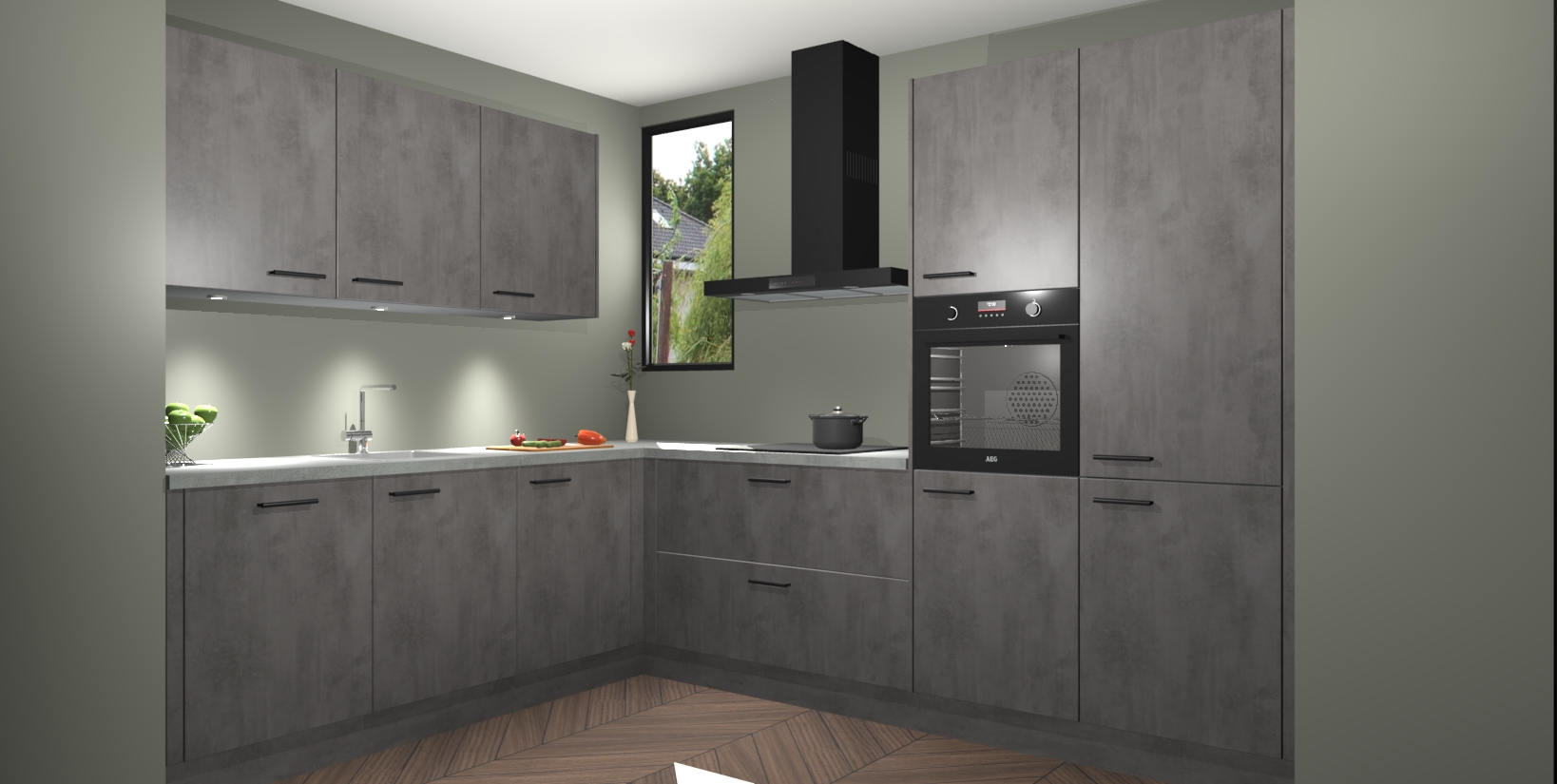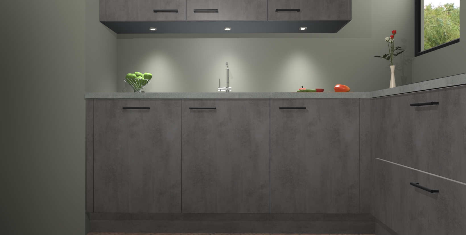 Maak u keuken elegant en verfijnd met de beton antraciet keuken Buenos Aires! Dit prachtige stuk heeft warme kleuren voor een strak, modern gevoel dat u de adem zal benemen. De handgrepen heeft net als de binnenkant van de kasten dezelfde beton antraciet afwerking, waardoor alles er nog beter uitziet.