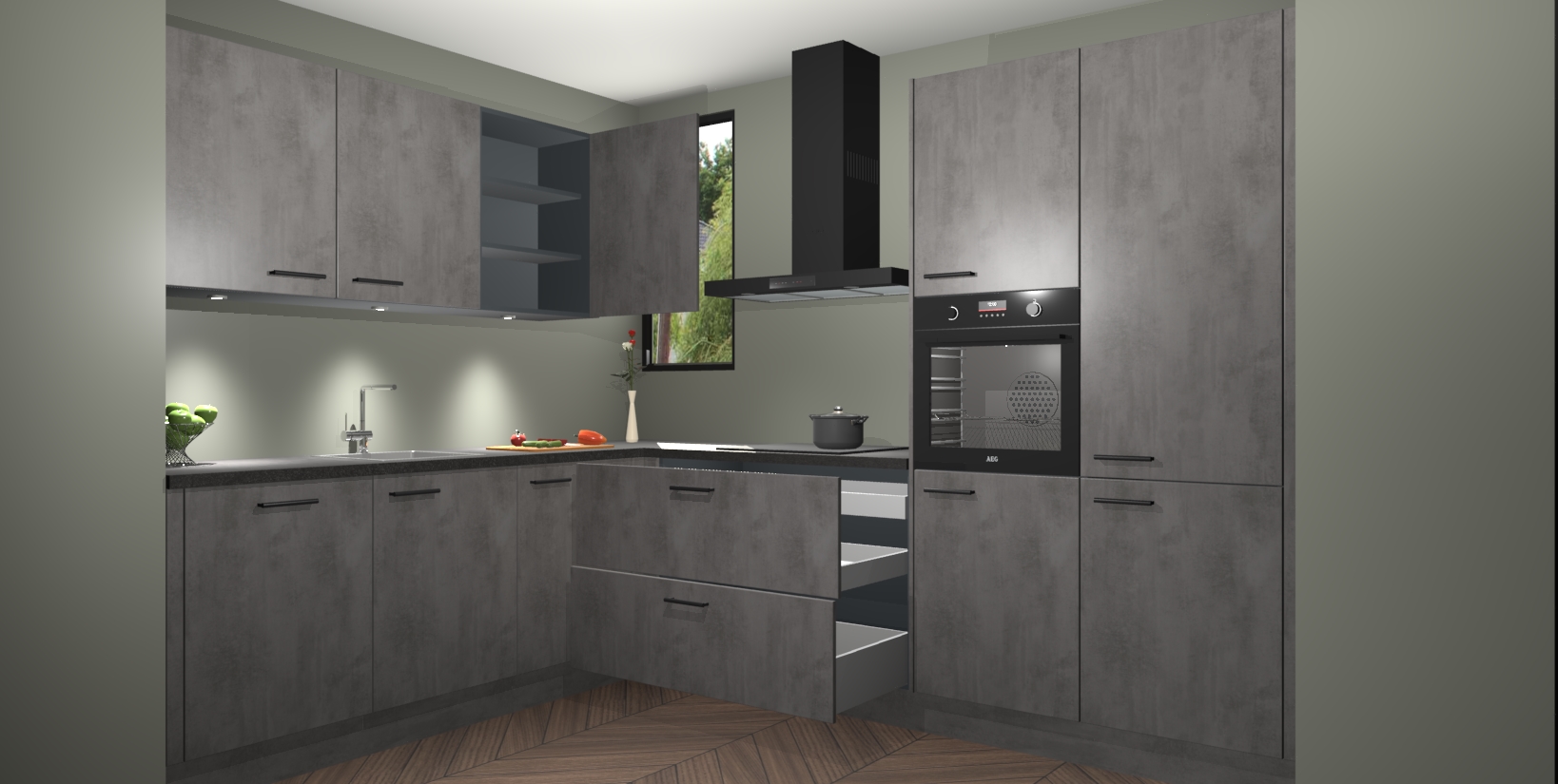 Maak u keuken elegant en verfijnd met de beton antraciet keuken Buenos Aires! Dit prachtige stuk heeft warme kleuren voor een strak, modern gevoel dat u de adem zal benemen. De handgrepen heeft net als de binnenkant van de kasten dezelfde beton antraciet afwerking, waardoor alles er nog beter uitziet.