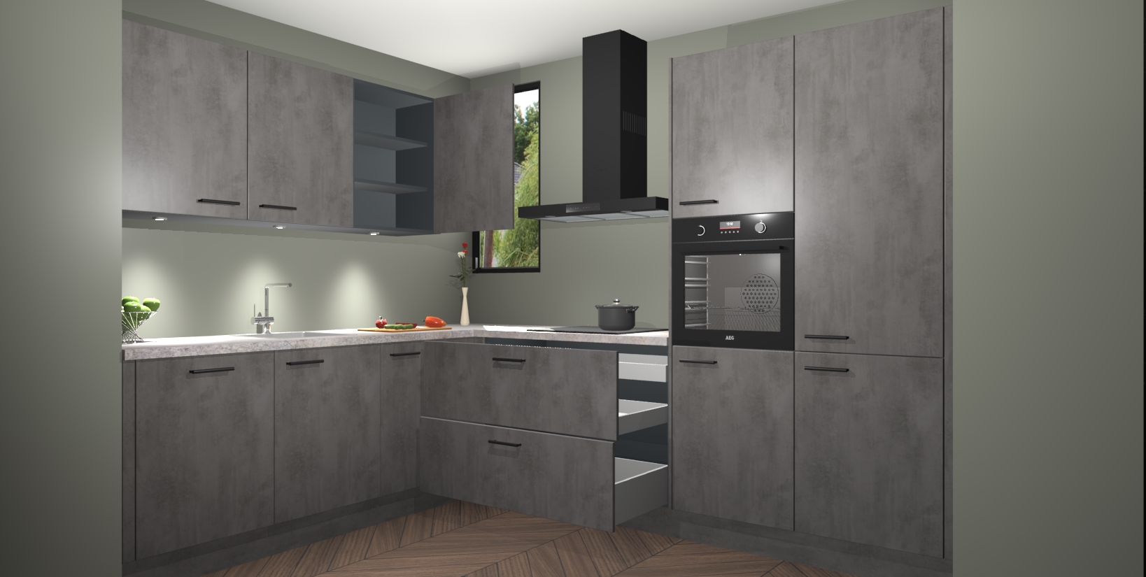 Maak u keuken elegant en verfijnd met de beton antraciet keuken Buenos Aires! Dit prachtige stuk heeft warme kleuren voor een strak, modern gevoel dat u de adem zal benemen. De handgrepen heeft net als de binnenkant van de kasten dezelfde beton antraciet afwerking, waardoor alles er nog beter uitziet.