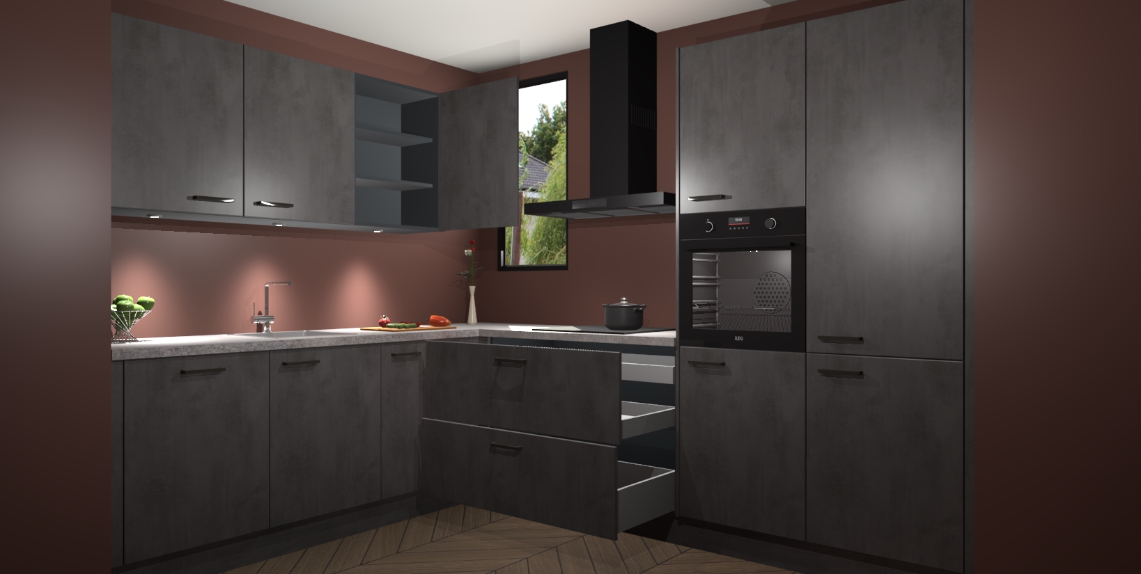 Maak u keuken elegant en verfijnd met de beton antraciet keuken Buenos Aires! Dit prachtige stuk heeft warme kleuren voor een strak, modern gevoel dat u de adem zal benemen. De handgrepen heeft net als de binnenkant van de kasten dezelfde beton antraciet afwerking, waardoor alles er nog beter uitziet.