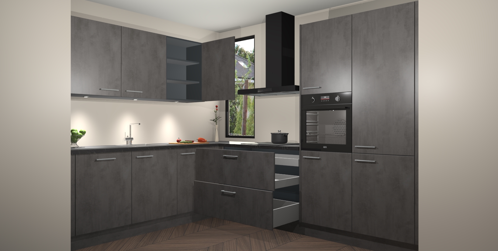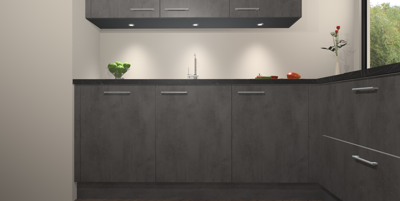 Maak u keuken elegant en verfijnd met de beton antraciet keuken Buenos Aires! Dit prachtige stuk heeft warme kleuren voor een strak, modern gevoel dat u de adem zal benemen. De handgrepen heeft net als de binnenkant van de kasten dezelfde beton antraciet afwerking, waardoor alles er nog beter uitziet.