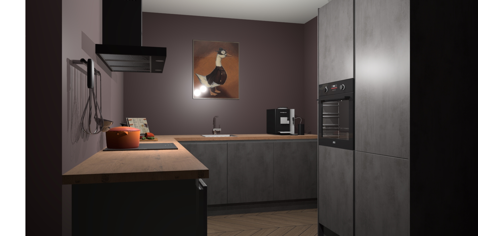 Met een modern, tijdloos design en ruime opslagruimte, zult u zich in no-time thuis voelen in uw nieuwe keuken. Uw leven wordt eenvoudiger met de soft-close deuren die voor het ultieme stille comfort zorgen - geen geluid dat u stoort terwijl u kookt. Ook is de keuken voorzien van 5 ingebouwde apparaten: een oven, inductie kookplaat, afzuigkap, vaatwasser en koelkast. Deze kunnen gemakkelijk na bestelling worden bijgewerkt naar AEG - waardoor uw luxe ervaring compleet is.