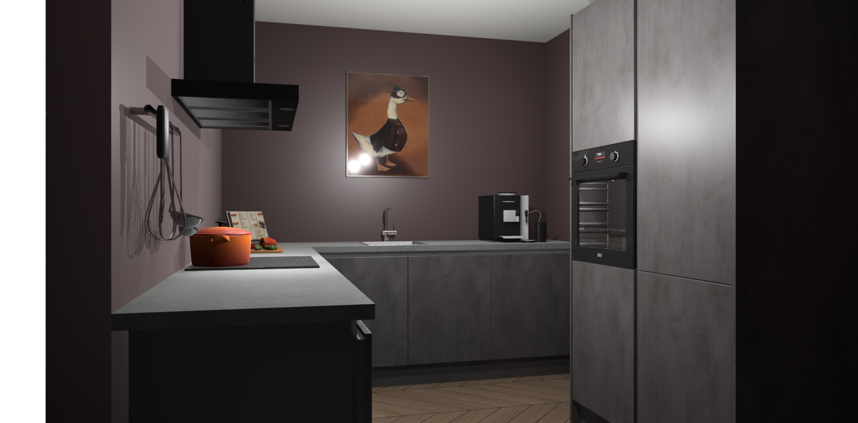Met een modern, tijdloos design en ruime opslagruimte, zult u zich in no-time thuis voelen in uw nieuwe keuken. Uw leven wordt eenvoudiger met de soft-close deuren die voor het ultieme stille comfort zorgen - geen geluid dat u stoort terwijl u kookt. Ook is de keuken voorzien van 5 ingebouwde apparaten: een oven, inductie kookplaat, afzuigkap, vaatwasser en koelkast. Deze kunnen gemakkelijk na bestelling worden bijgewerkt naar AEG - waardoor uw luxe ervaring compleet is.