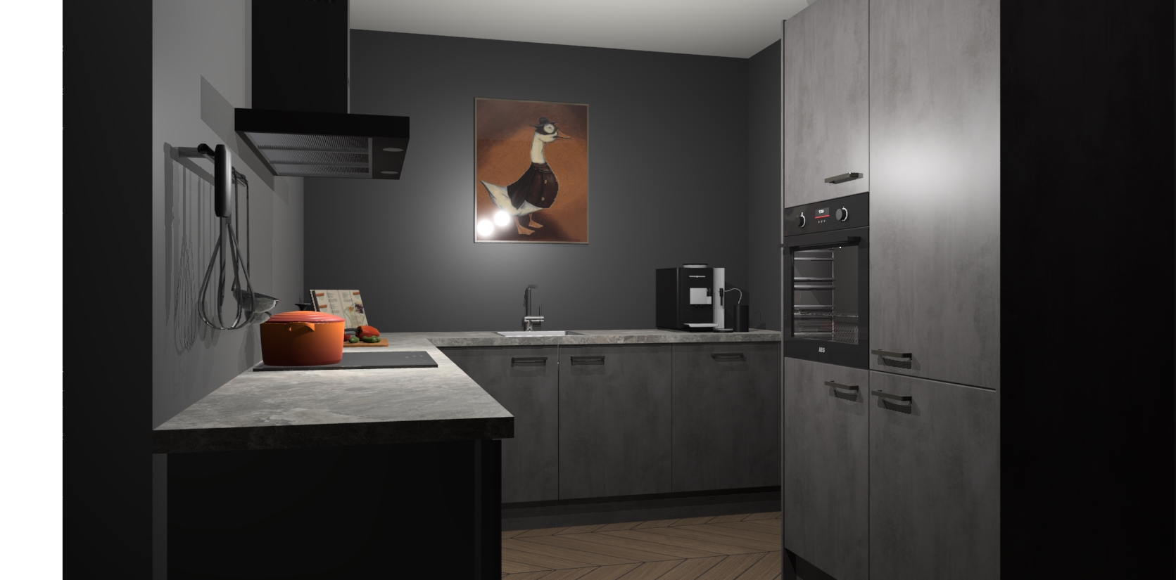 Met een modern, tijdloos design en ruime opslagruimte, zult u zich in no-time thuis voelen in uw nieuwe keuken. Uw leven wordt eenvoudiger met de soft-close deuren die voor het ultieme stille comfort zorgen - geen geluid dat u stoort terwijl u kookt. Ook is de keuken voorzien van 5 ingebouwde apparaten: een oven, inductie kookplaat, afzuigkap, vaatwasser en koelkast. Deze kunnen gemakkelijk na bestelling worden bijgewerkt naar AEG - waardoor uw luxe ervaring compleet is.