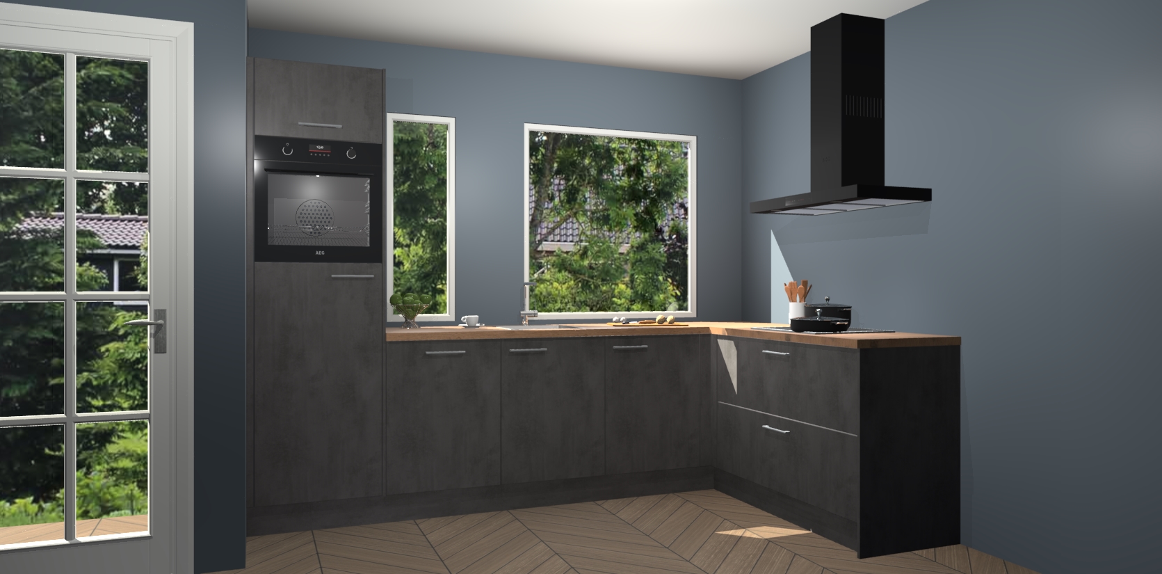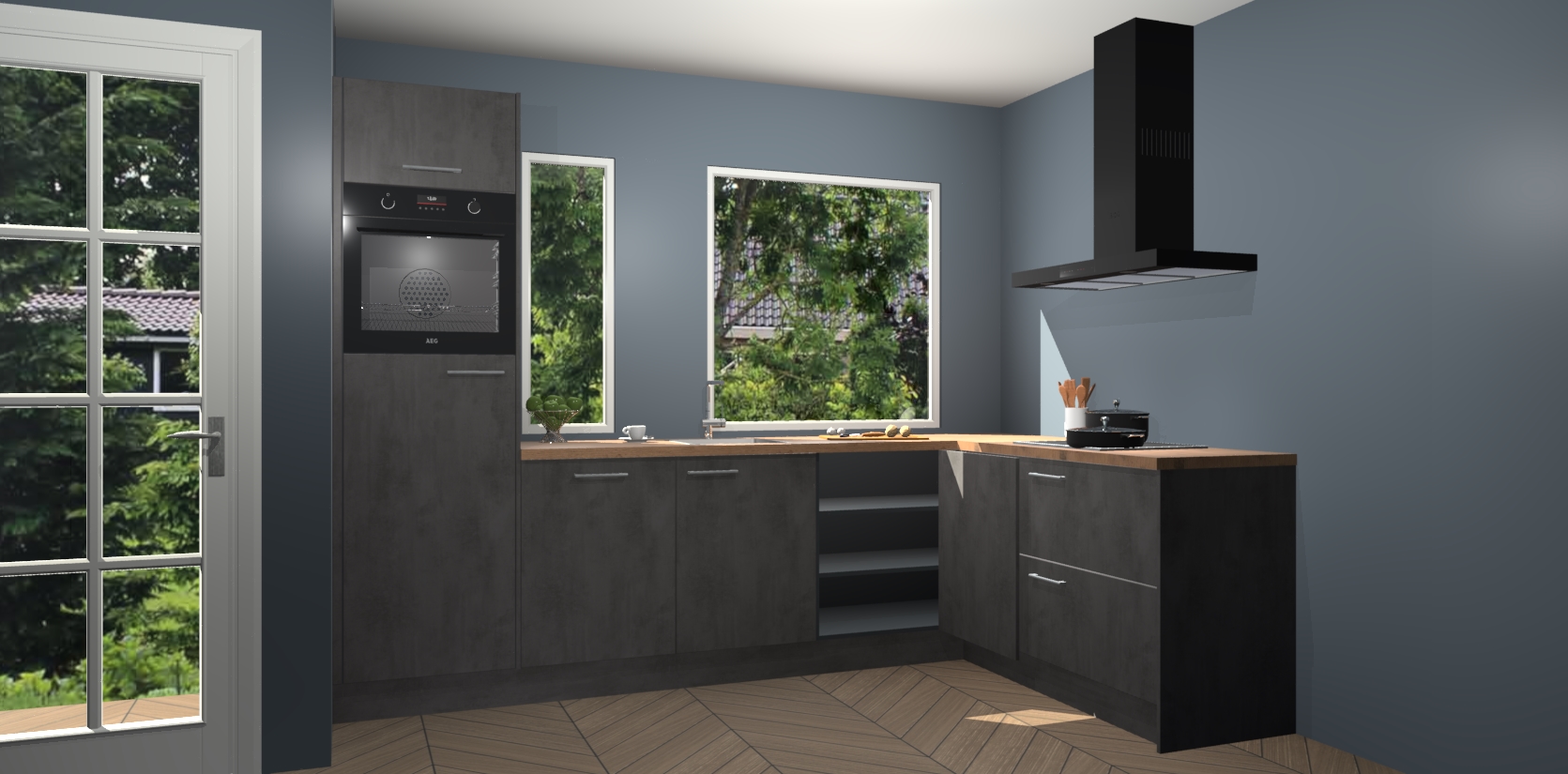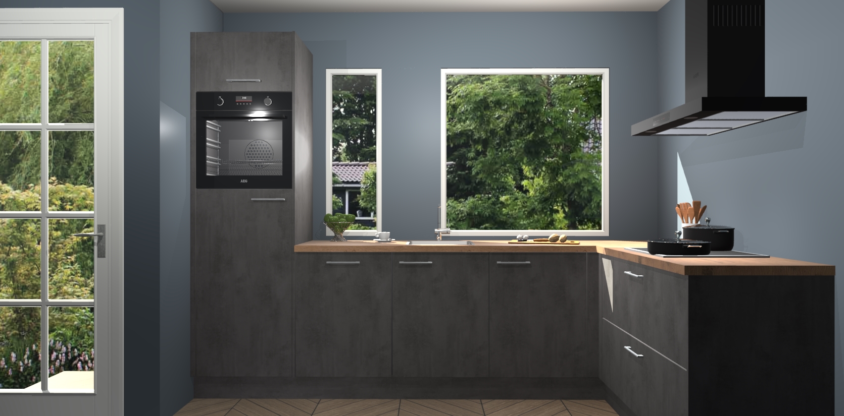 De beton antraciet keuken Cannes - de perfecte hoekkeuken voor elke ruimte! Onze combinatie van modern, tijdloos design en betrouwbare Duitse kwaliteit gecombineerd met een onverslaanbare prijs maken deze keuken een geweldige manier om uw huis te verbeteren en stijl toe te voegen.