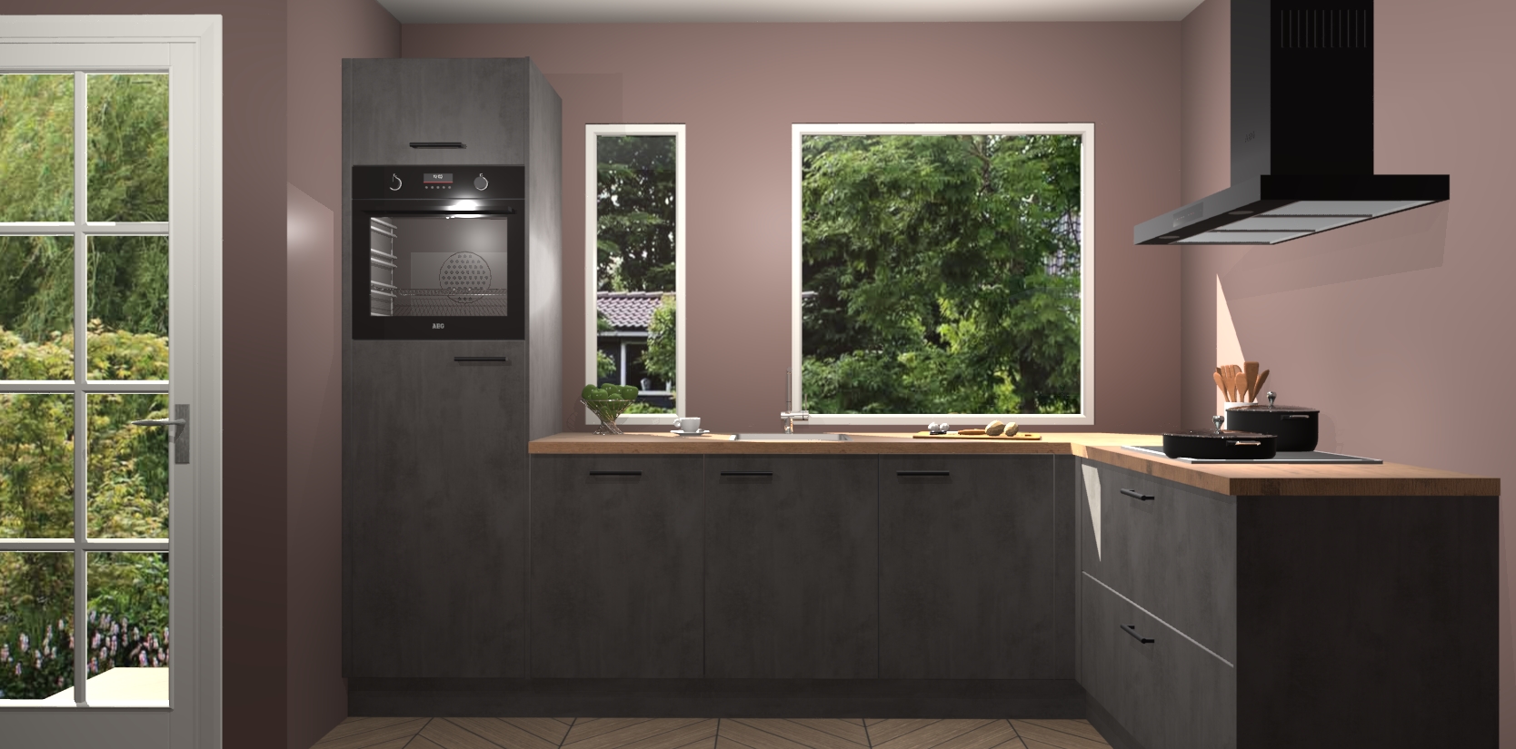 De beton antraciet keuken Cannes - de perfecte hoekkeuken voor elke ruimte! Onze combinatie van modern, tijdloos design en betrouwbare Duitse kwaliteit gecombineerd met een onverslaanbare prijs maken deze keuken een geweldige manier om uw huis te verbeteren en stijl toe te voegen.