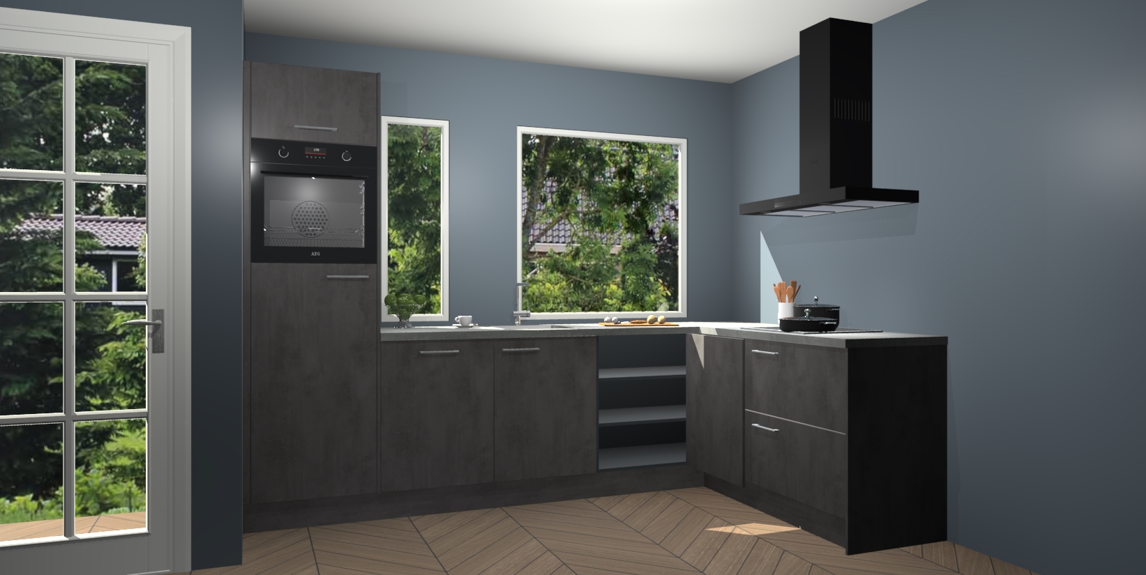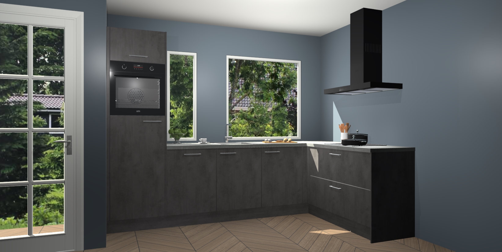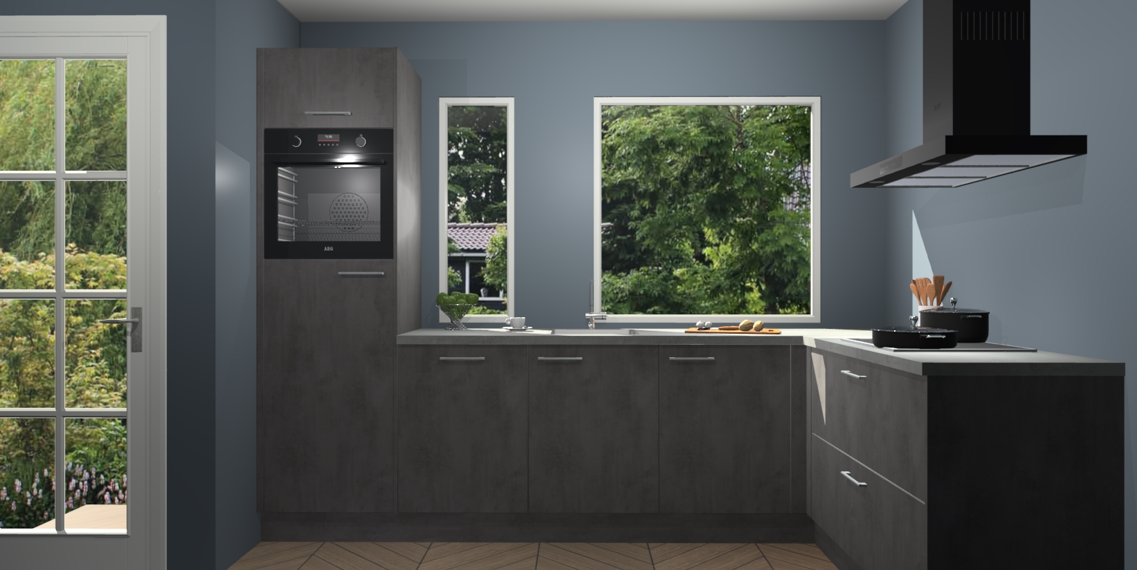 De beton antraciet keuken Cannes - de perfecte hoekkeuken voor elke ruimte! Onze combinatie van modern, tijdloos design en betrouwbare Duitse kwaliteit gecombineerd met een onverslaanbare prijs maken deze keuken een geweldige manier om uw huis te verbeteren en stijl toe te voegen.