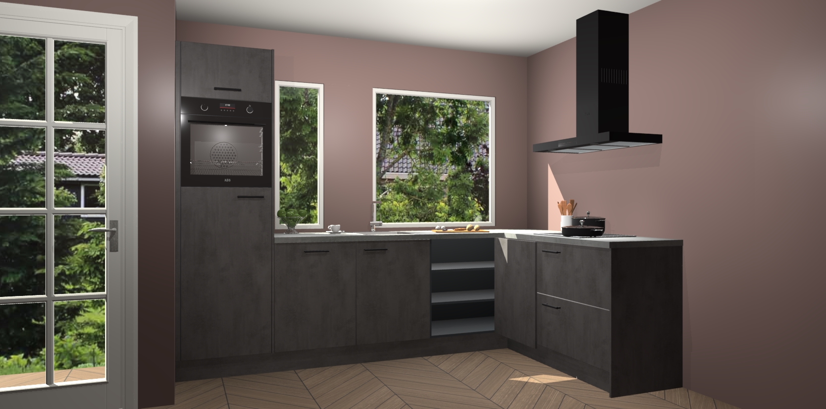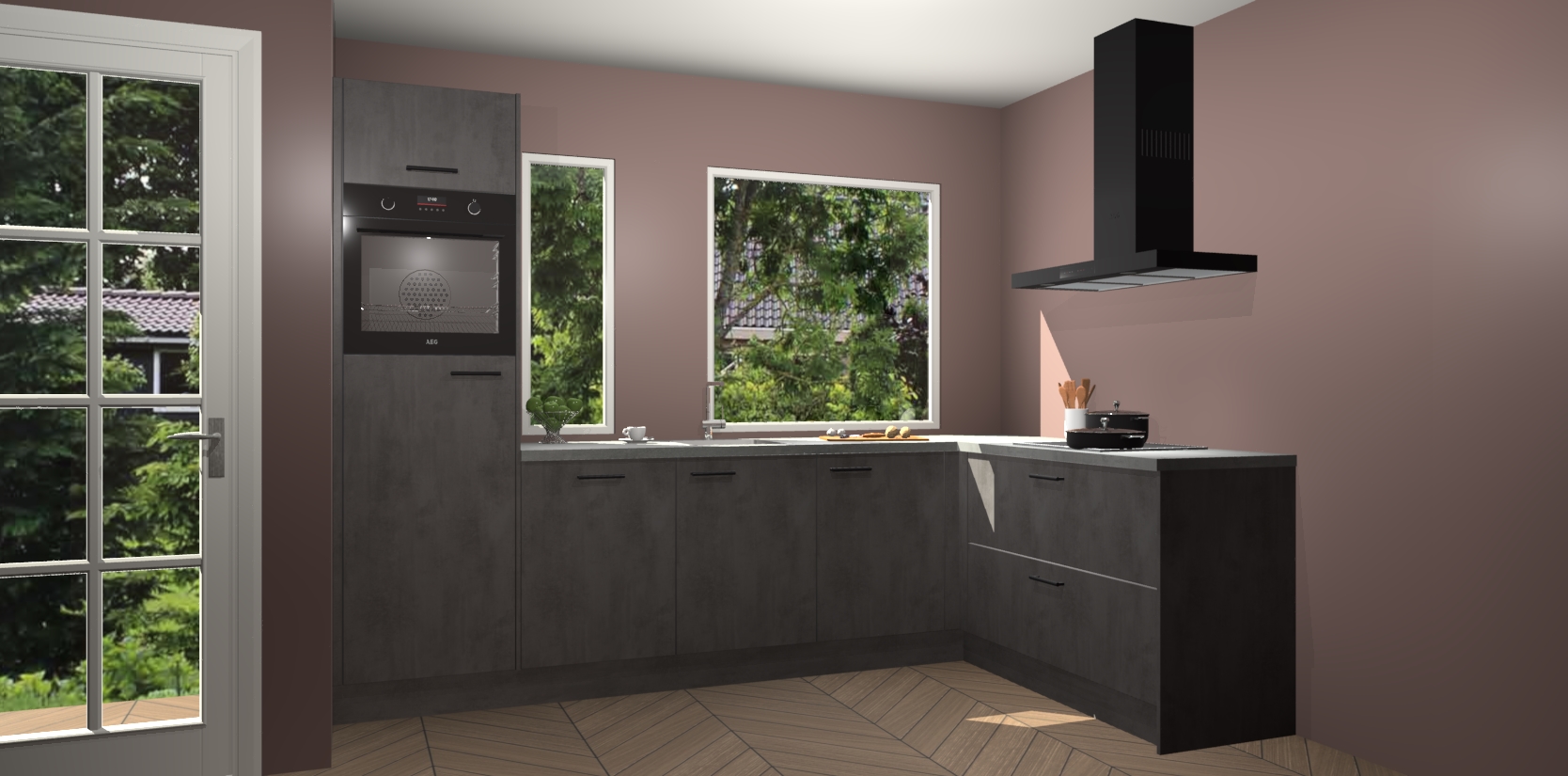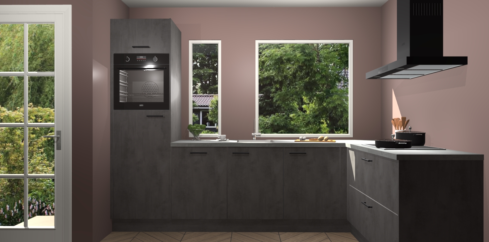 De beton antraciet keuken Cannes - de perfecte hoekkeuken voor elke ruimte! Onze combinatie van modern, tijdloos design en betrouwbare Duitse kwaliteit gecombineerd met een onverslaanbare prijs maken deze keuken een geweldige manier om uw huis te verbeteren en stijl toe te voegen.