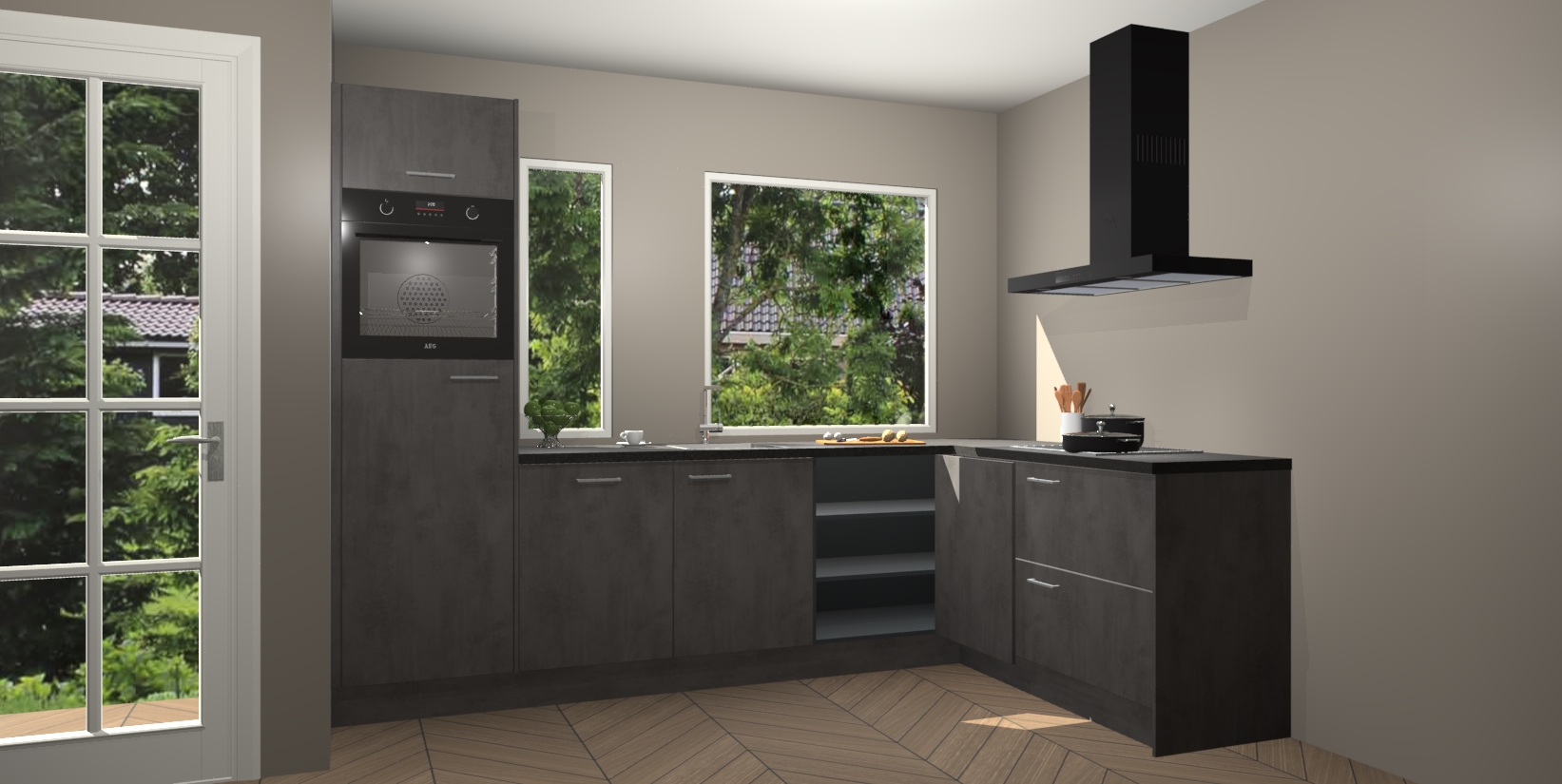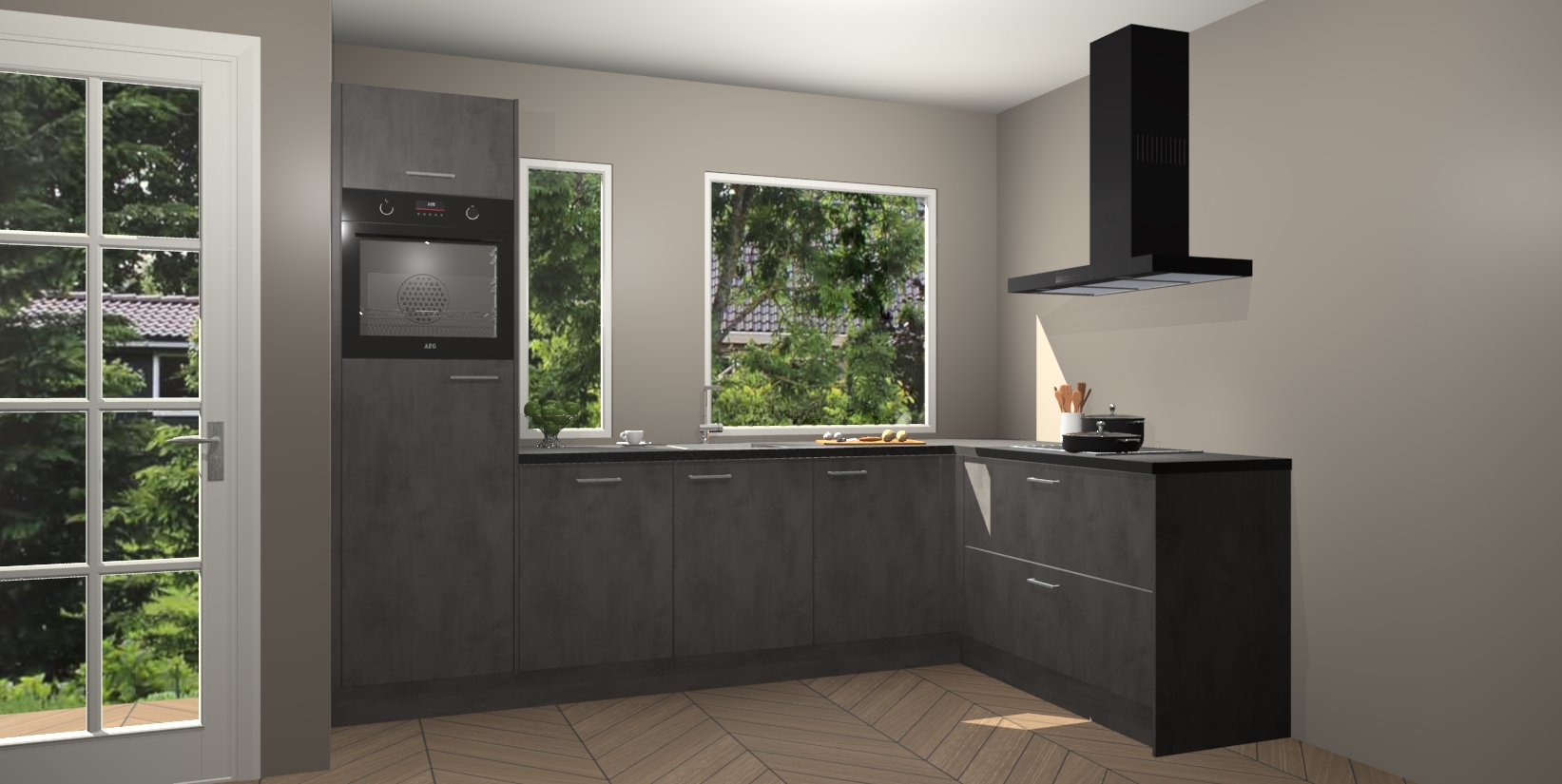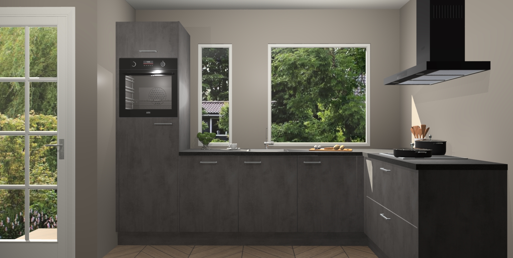 De beton antraciet keuken Cannes - de perfecte hoekkeuken voor elke ruimte! Onze combinatie van modern, tijdloos design en betrouwbare Duitse kwaliteit gecombineerd met een onverslaanbare prijs maken deze keuken een geweldige manier om uw huis te verbeteren en stijl toe te voegen.