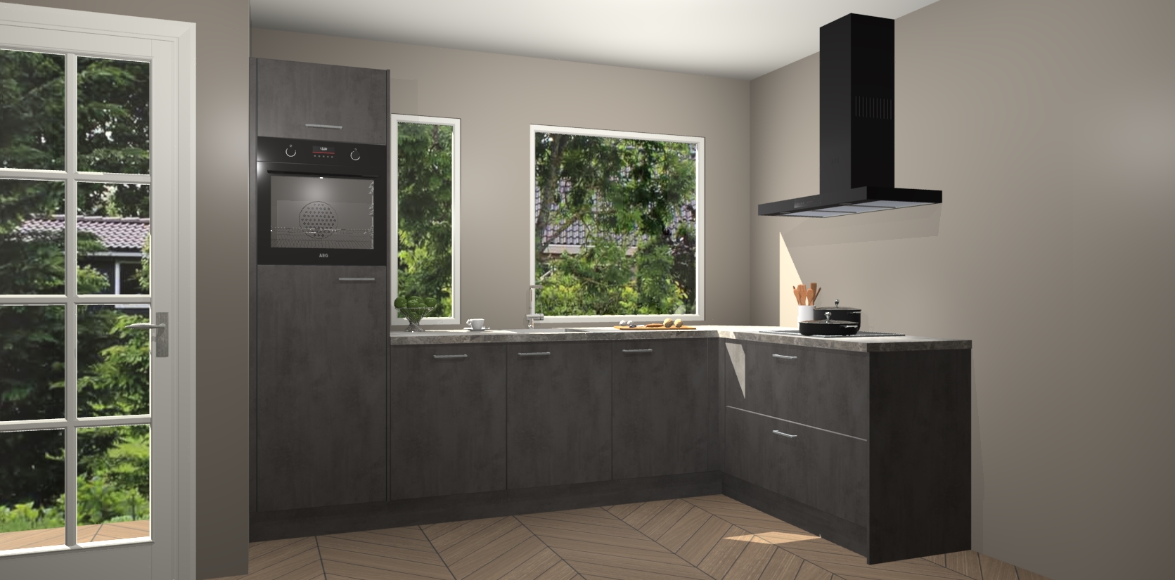 De beton antraciet keuken Cannes - de perfecte hoekkeuken voor elke ruimte! Onze combinatie van modern, tijdloos design en betrouwbare Duitse kwaliteit gecombineerd met een onverslaanbare prijs maken deze keuken een geweldige manier om uw huis te verbeteren en stijl toe te voegen.