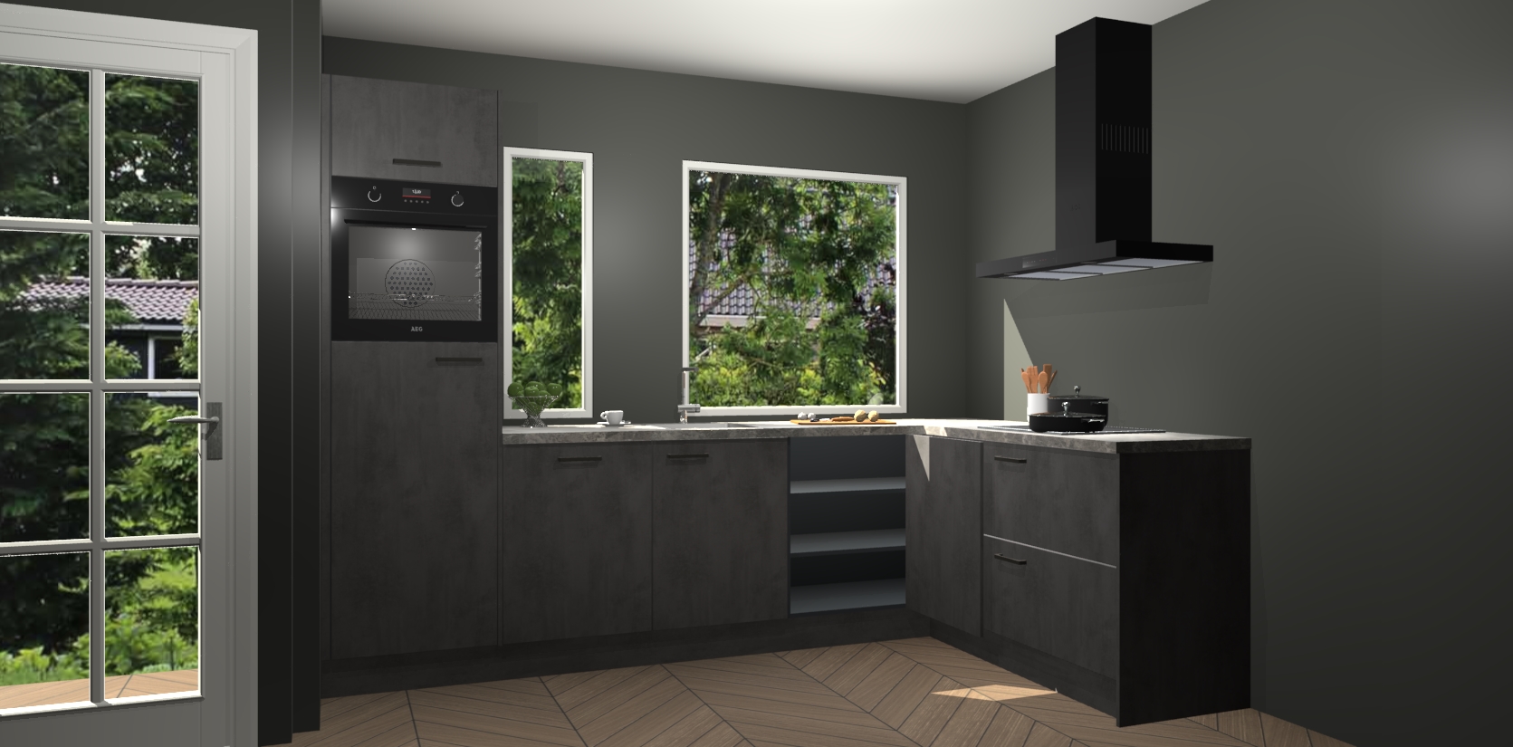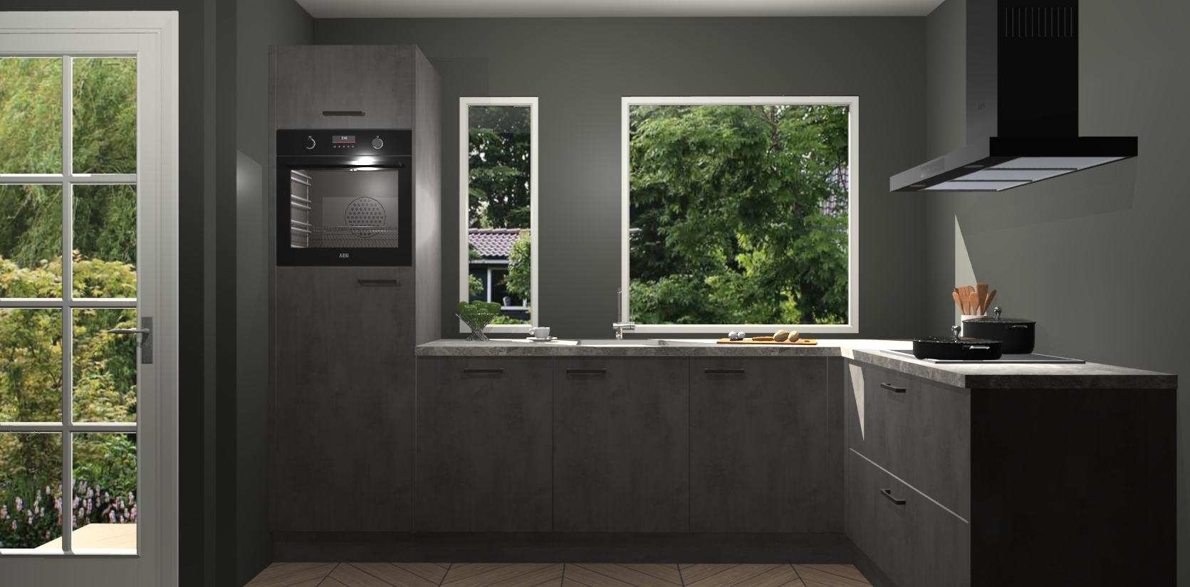 De beton antraciet keuken Cannes - de perfecte hoekkeuken voor elke ruimte! Onze combinatie van modern, tijdloos design en betrouwbare Duitse kwaliteit gecombineerd met een onverslaanbare prijs maken deze keuken een geweldige manier om uw huis te verbeteren en stijl toe te voegen.