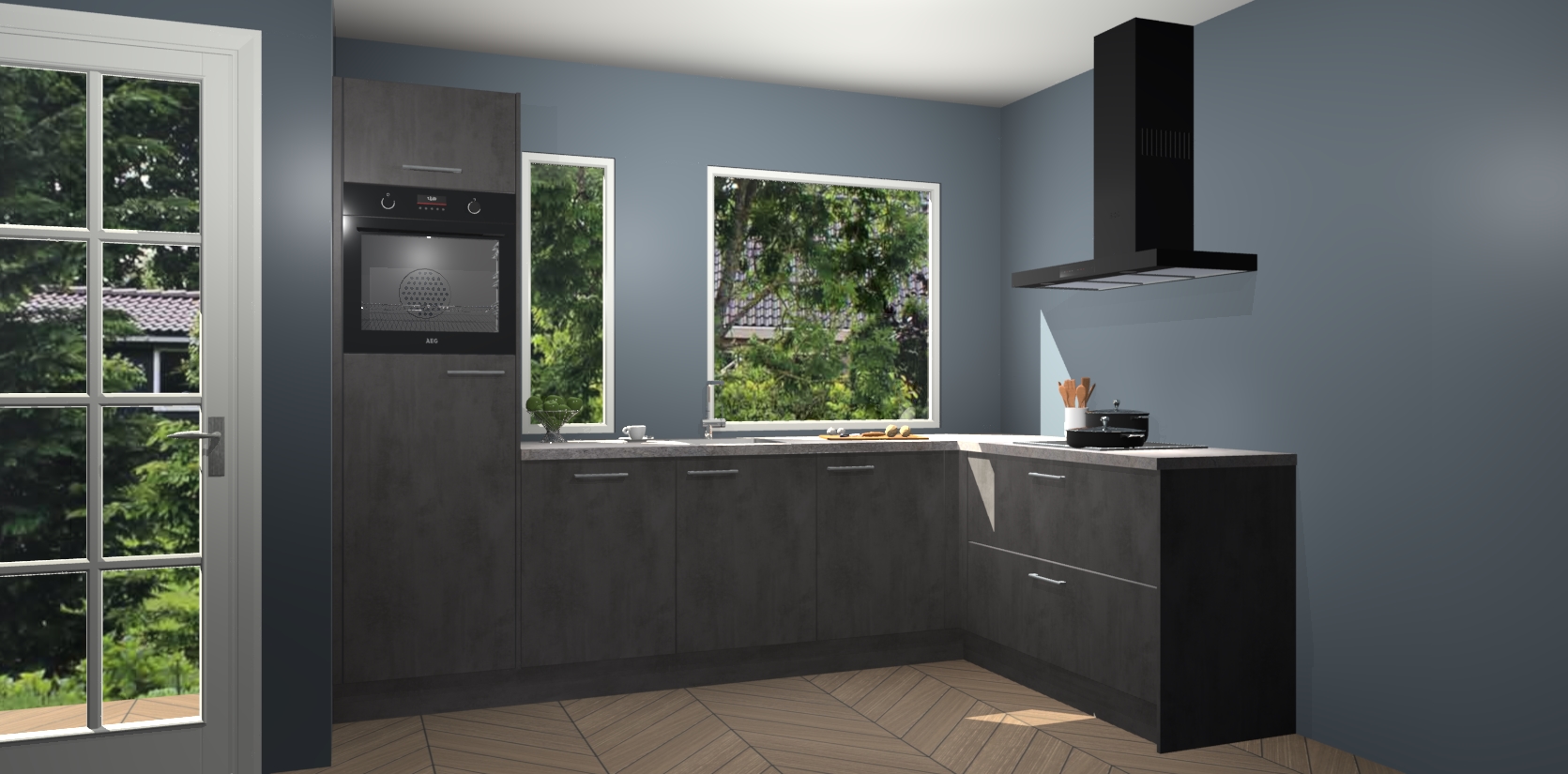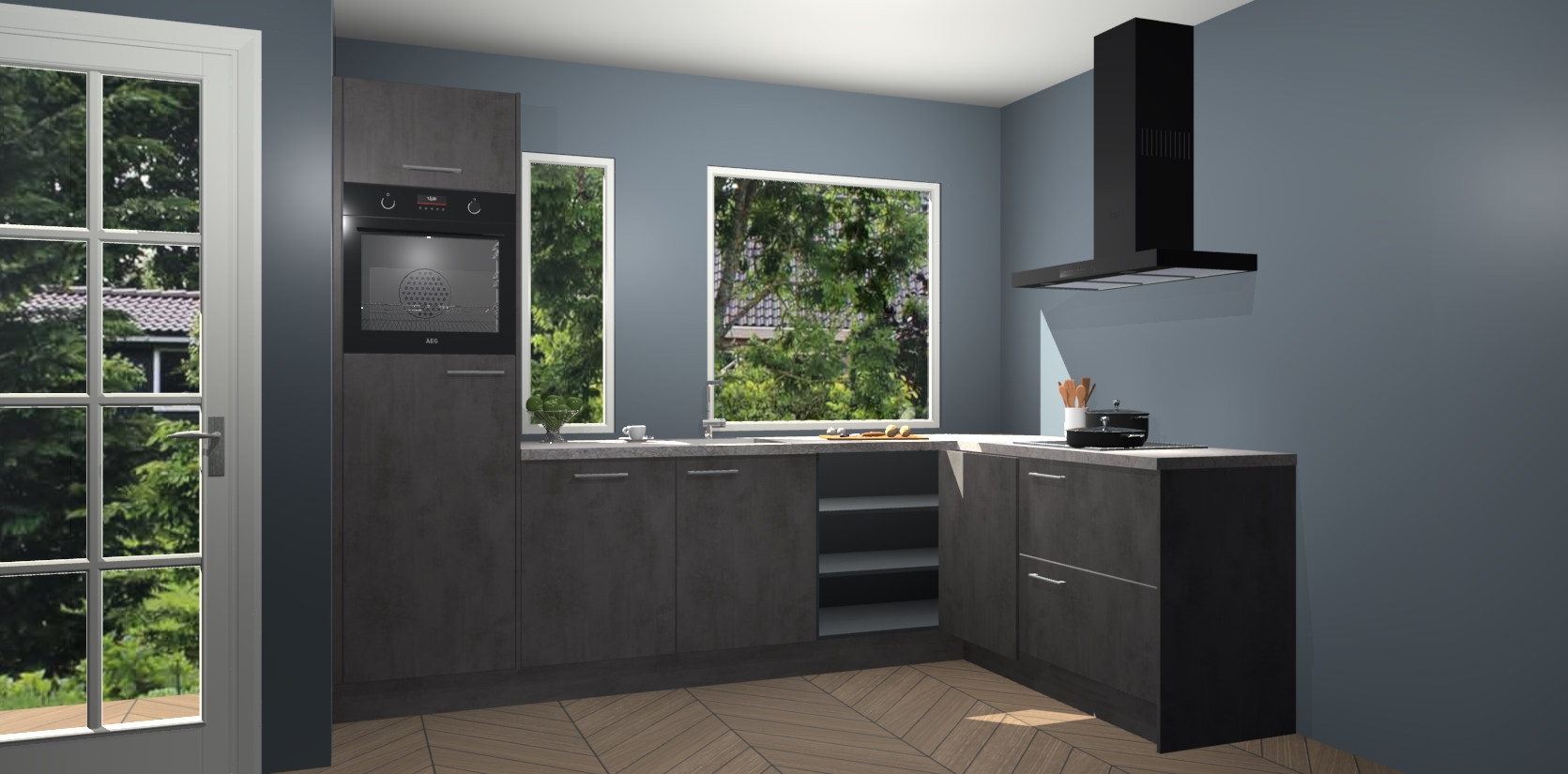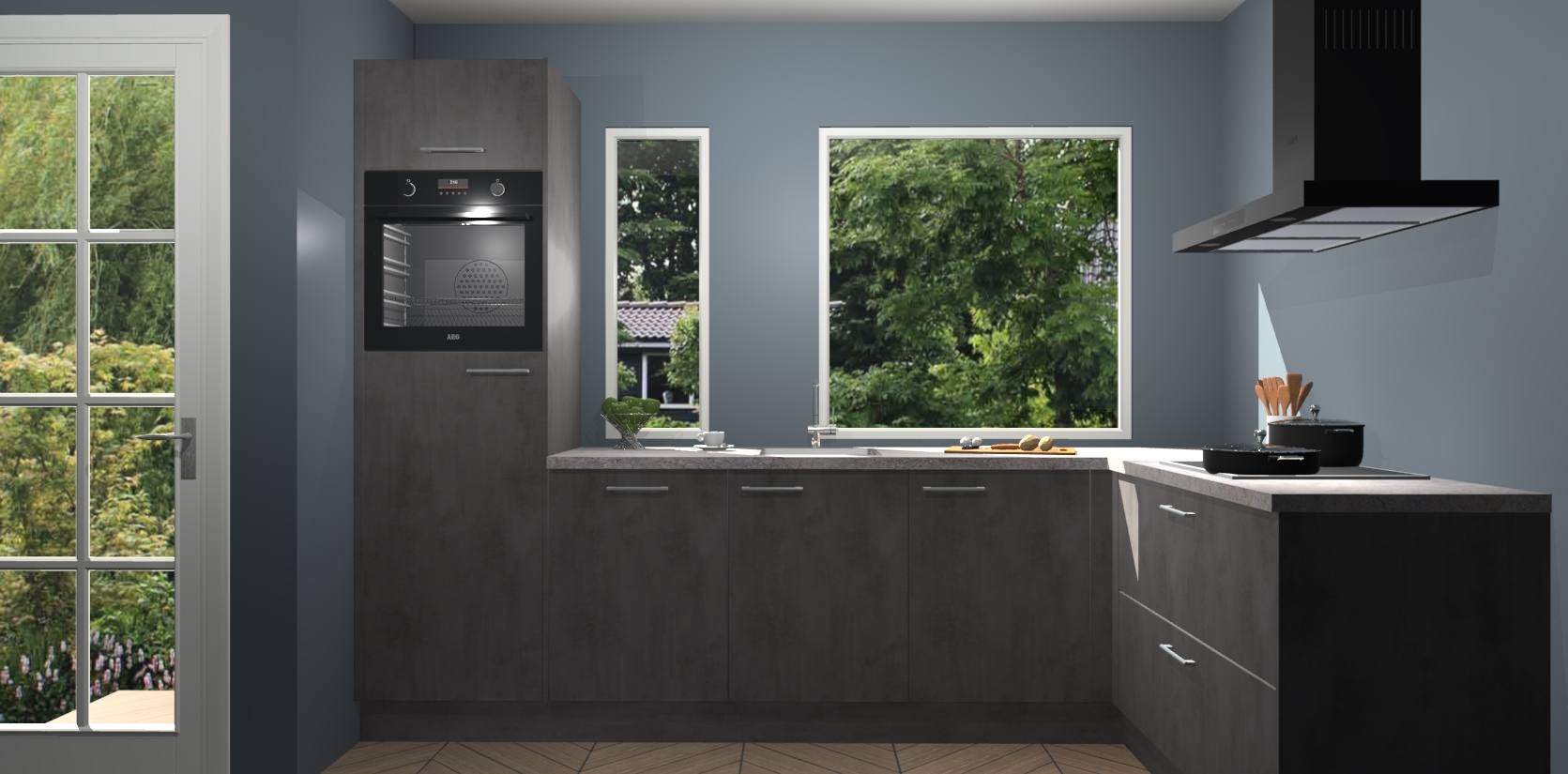 De beton antraciet keuken Cannes - de perfecte hoekkeuken voor elke ruimte! Onze combinatie van modern, tijdloos design en betrouwbare Duitse kwaliteit gecombineerd met een onverslaanbare prijs maken deze keuken een geweldige manier om uw huis te verbeteren en stijl toe te voegen.