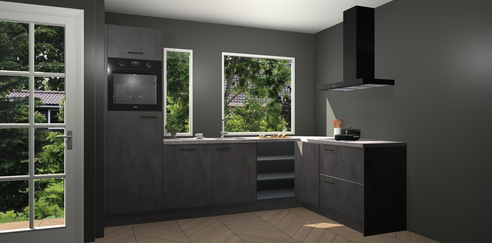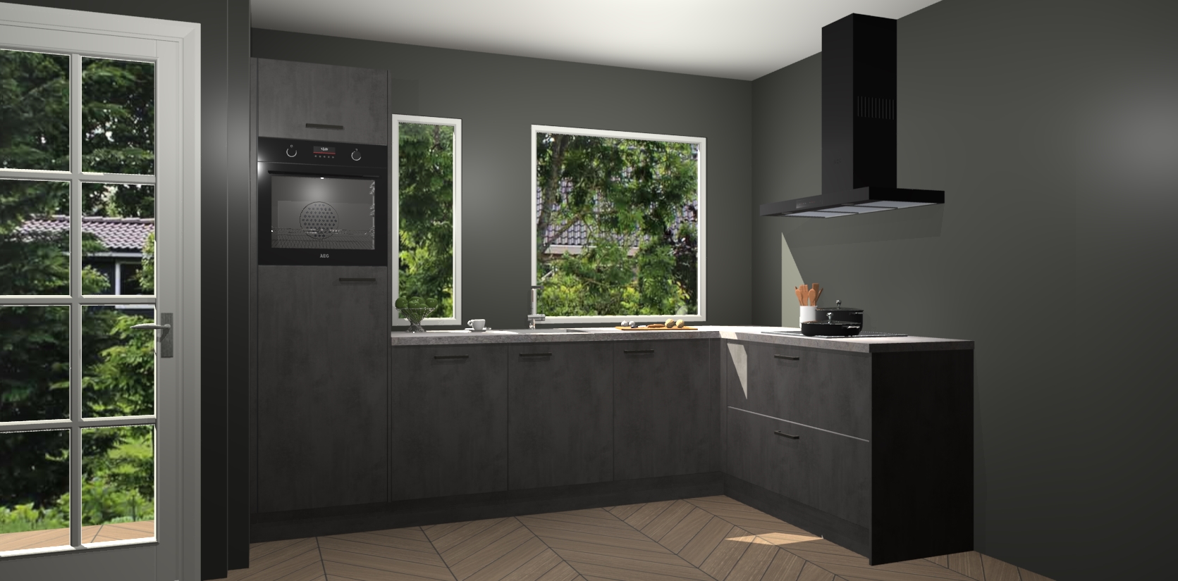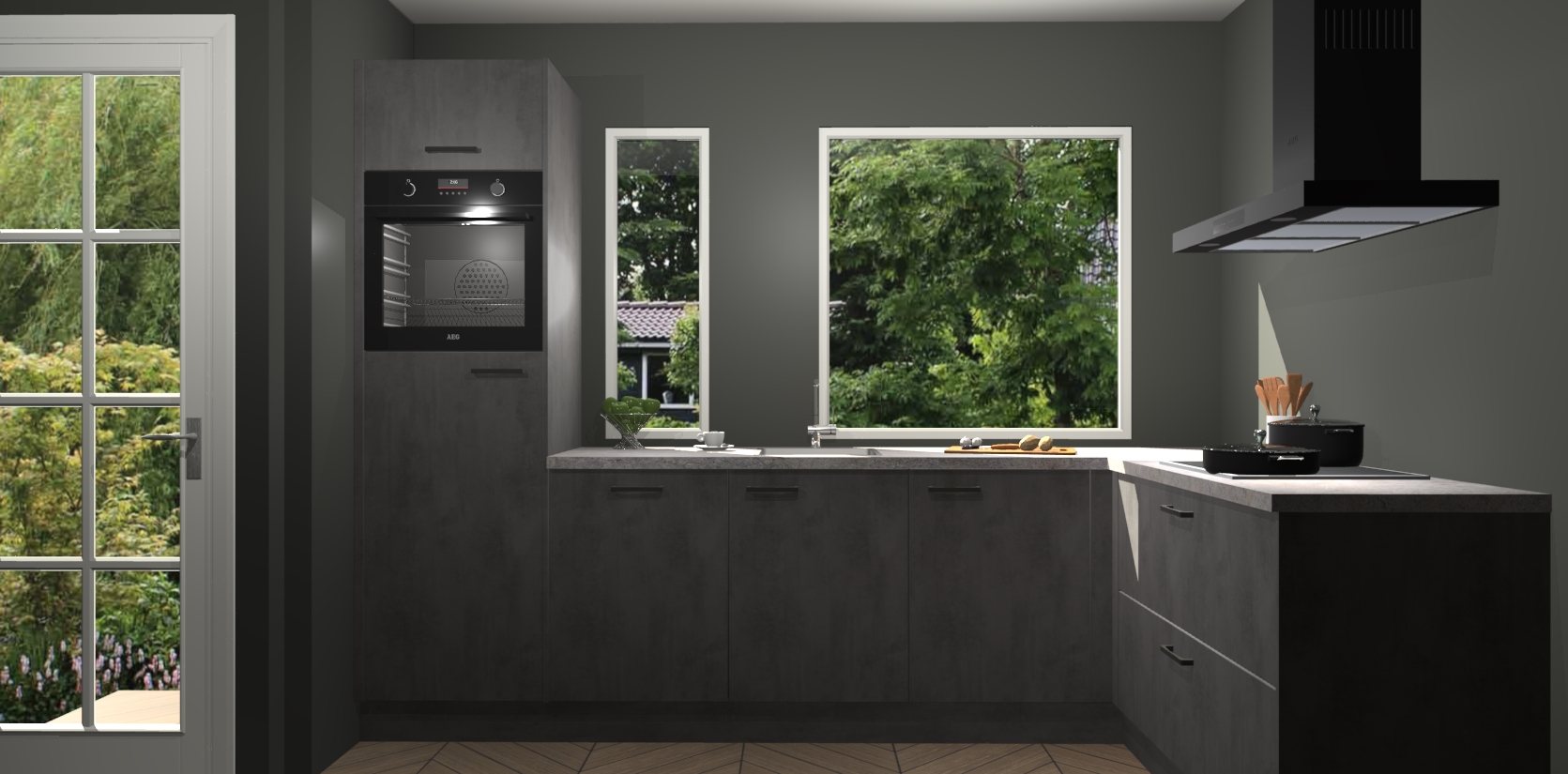 De beton antraciet keuken Cannes - de perfecte hoekkeuken voor elke ruimte! Onze combinatie van modern, tijdloos design en betrouwbare Duitse kwaliteit gecombineerd met een onverslaanbare prijs maken deze keuken een geweldige manier om uw huis te verbeteren en stijl toe te voegen.