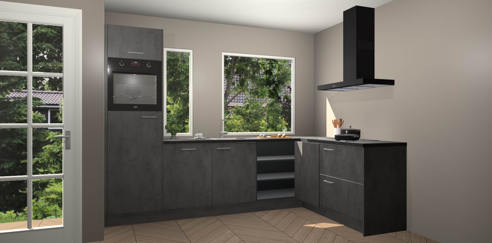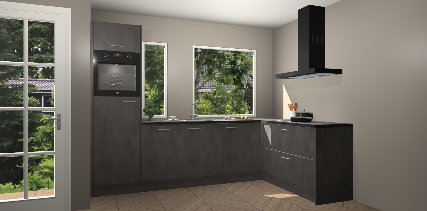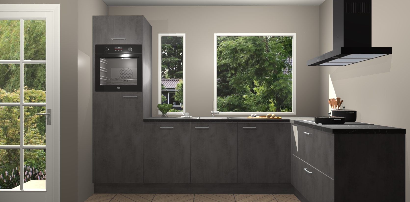 De beton antraciet keuken Cannes - de perfecte hoekkeuken voor elke ruimte! Onze combinatie van modern, tijdloos design en betrouwbare Duitse kwaliteit gecombineerd met een onverslaanbare prijs maken deze keuken een geweldige manier om uw huis te verbeteren en stijl toe te voegen.