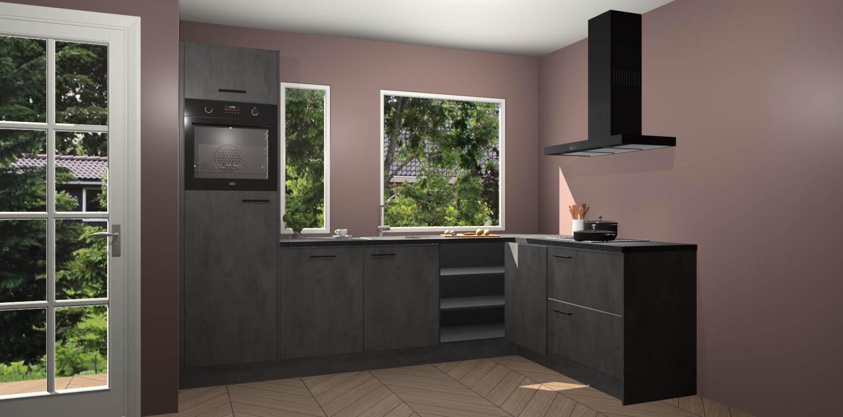 De beton antraciet keuken Cannes - de perfecte hoekkeuken voor elke ruimte! Onze combinatie van modern, tijdloos design en betrouwbare Duitse kwaliteit gecombineerd met een onverslaanbare prijs maken deze keuken een geweldige manier om uw huis te verbeteren en stijl toe te voegen.