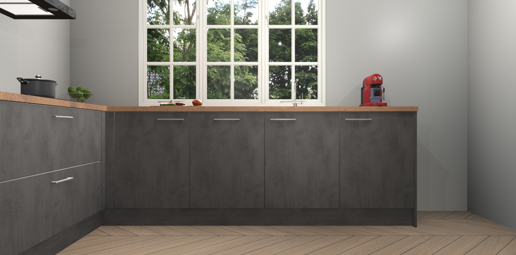 Welkom in de nieuwe wereld van een moderne keuken: de Beton Antraciet keuken Casablanca! Met dit innovatieve keukendesign haalt u de natuur naar binnen. Neem plaats aan uw hout-look keuken en voel u verbonden met de prachtige Beton Antraciet kleur. Zeer gebruiksvriendelijk, ervaring door prettige materialen en kleur die perfect aansluiten bij uw sfeerkeuze in huis.