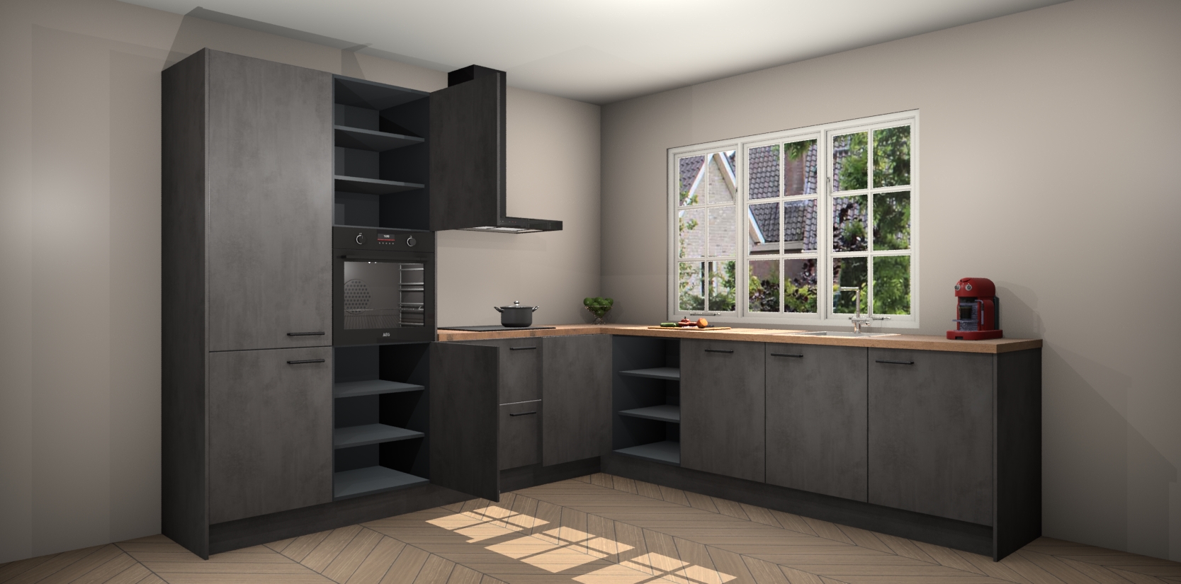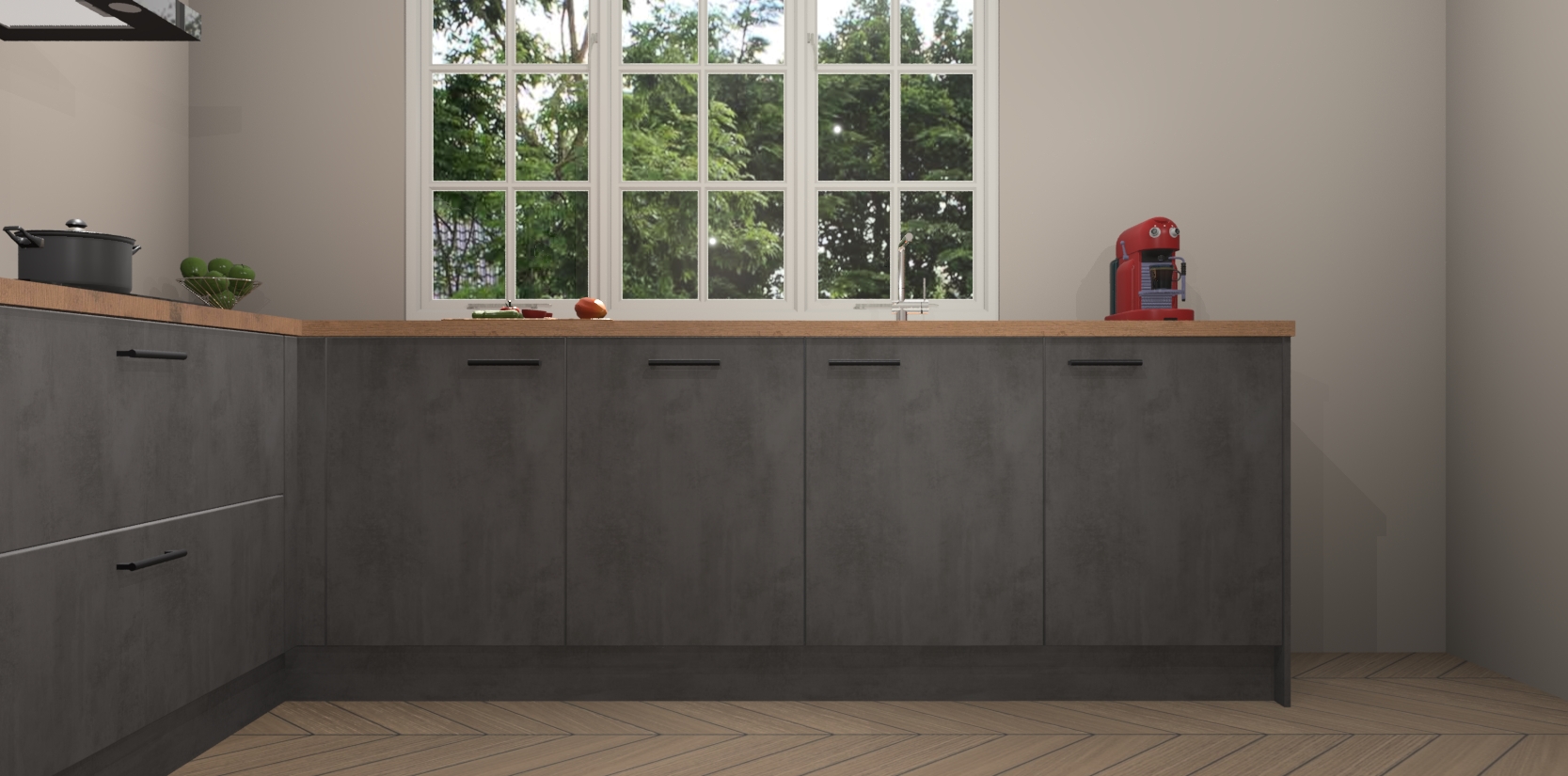 Welkom in de nieuwe wereld van een moderne keuken: de Beton Antraciet keuken Casablanca! Met dit innovatieve keukendesign haalt u de natuur naar binnen. Neem plaats aan uw hout-look keuken en voel u verbonden met de prachtige Beton Antraciet kleur. Zeer gebruiksvriendelijk, ervaring door prettige materialen en kleur die perfect aansluiten bij uw sfeerkeuze in huis.