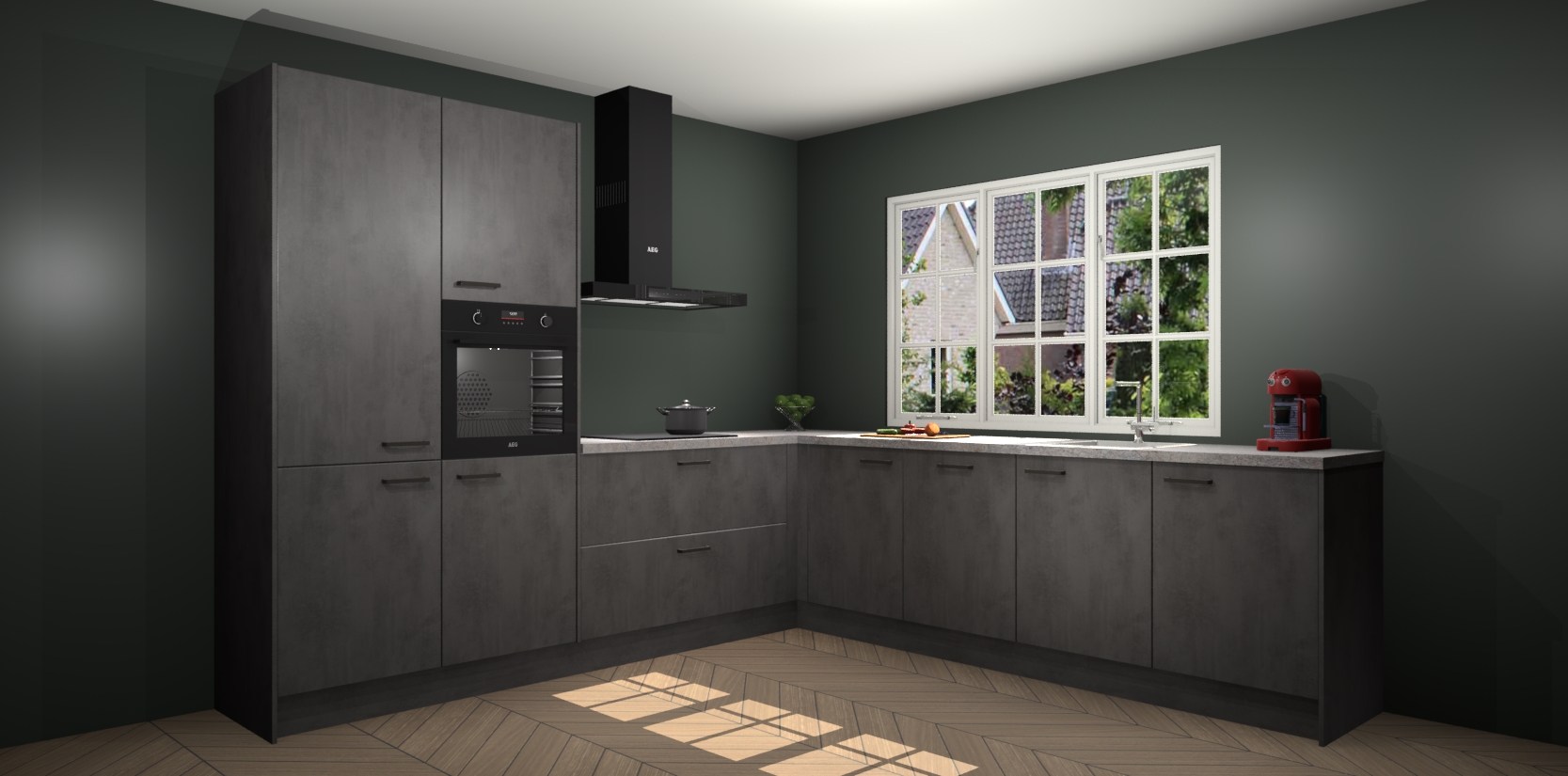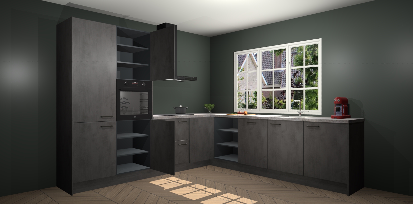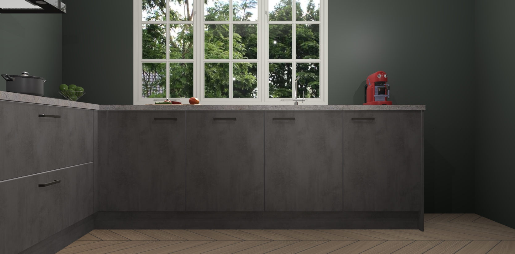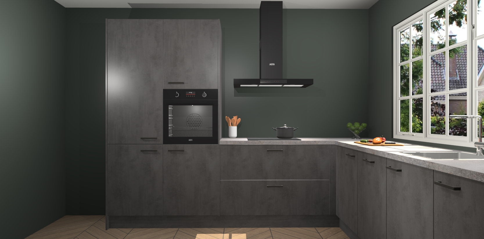 Welkom in de nieuwe wereld van een moderne keuken: de Beton Antraciet keuken Casablanca! Met dit innovatieve keukendesign haalt u de natuur naar binnen. Neem plaats aan uw hout-look keuken en voel u verbonden met de prachtige Beton Antraciet kleur. Zeer gebruiksvriendelijk, ervaring door prettige materialen en kleur die perfect aansluiten bij uw sfeerkeuze in huis.