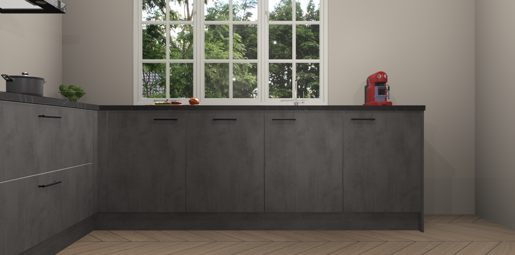 Welkom in de nieuwe wereld van een moderne keuken: de Beton Antraciet keuken Casablanca! Met dit innovatieve keukendesign haalt u de natuur naar binnen. Neem plaats aan uw hout-look keuken en voel u verbonden met de prachtige Beton Antraciet kleur. Zeer gebruiksvriendelijk, ervaring door prettige materialen en kleur die perfect aansluiten bij uw sfeerkeuze in huis.