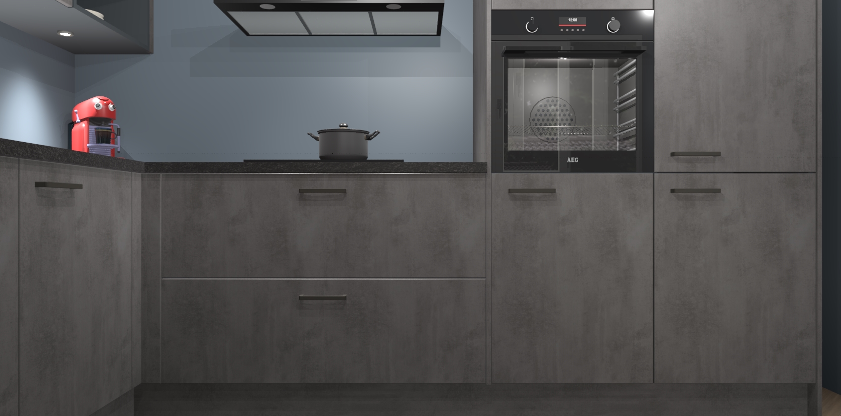 De Beton Antraciet keuken Cognac gaat alleen maar om de beste keukenervaring. Kies gewoon de beste apparatuur en ongeëvenaarde Duitse constructie die u thuis wilt hebben en verander uw huiskamer hartelijkheid meteen in professionaliteit. Laat de toon weten dat u gemakkelijk kan genieten van alle luxe die u verdiend? Bestel nu de Beton Antraciet keuken Cognac voor bij u thuis!