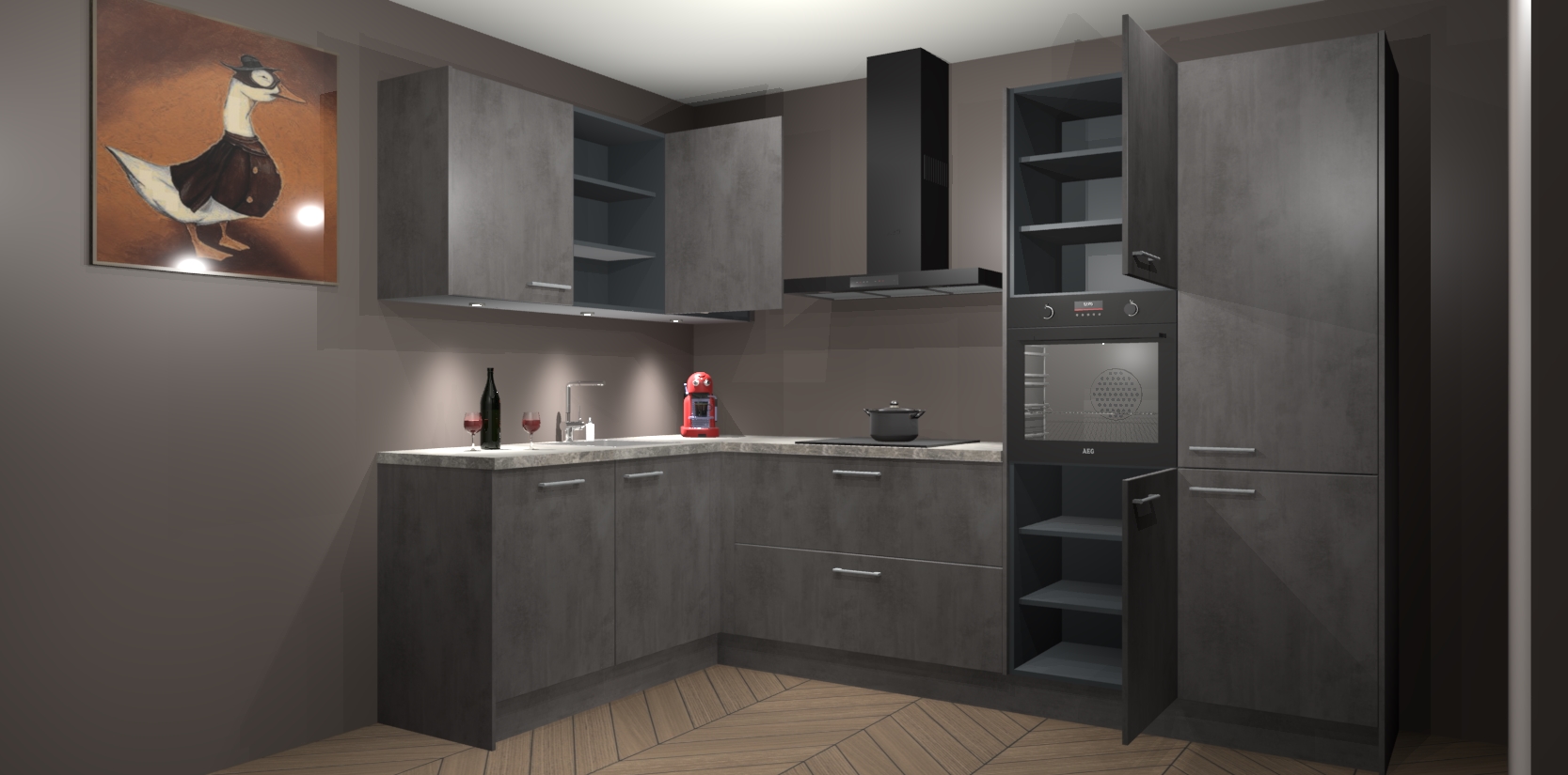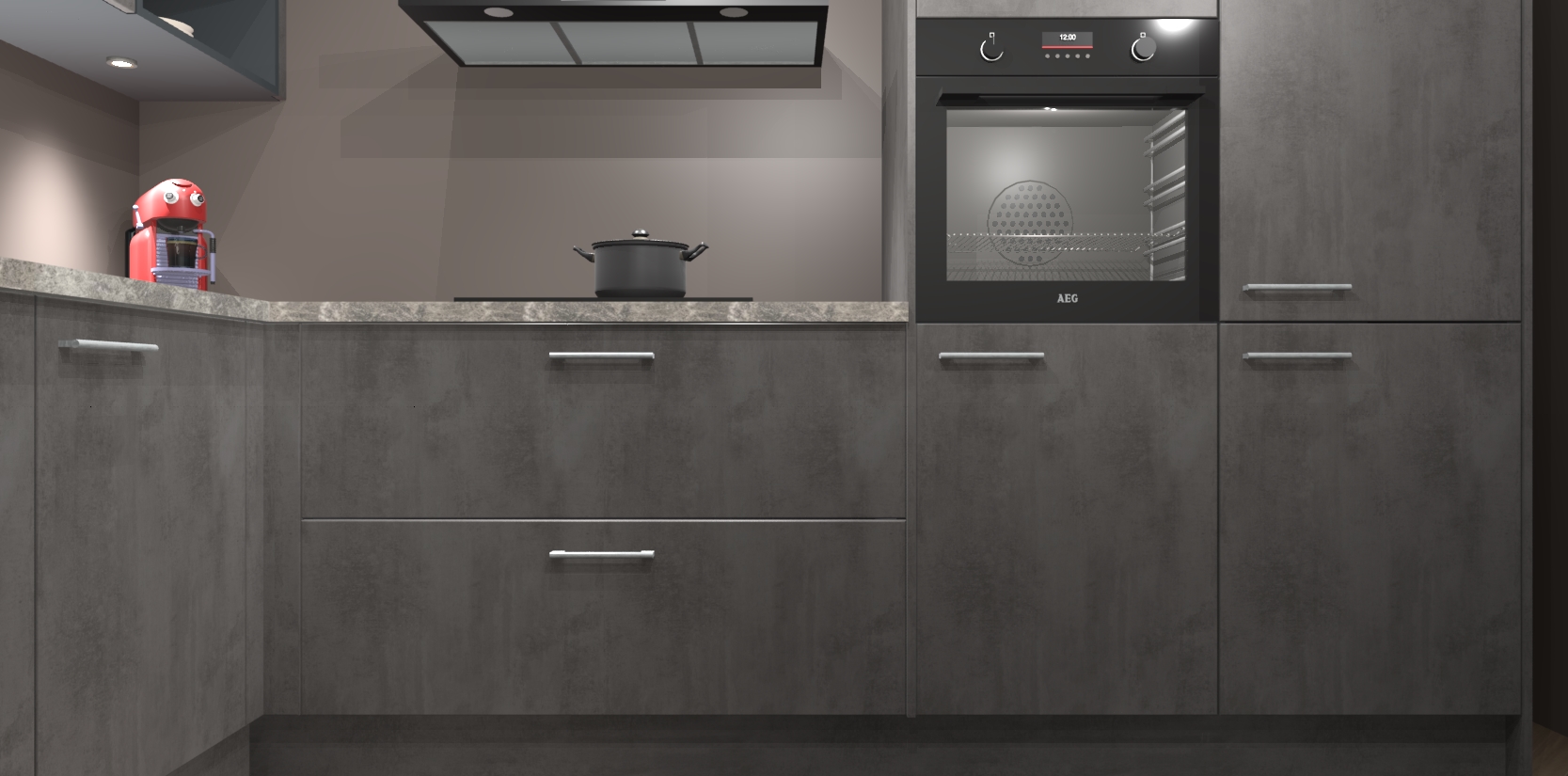 De Beton Antraciet keuken Cognac gaat alleen maar om de beste keukenervaring. Kies gewoon de beste apparatuur en ongeëvenaarde Duitse constructie die u thuis wilt hebben en verander uw huiskamer hartelijkheid meteen in professionaliteit. Laat de toon weten dat u gemakkelijk kan genieten van alle luxe die u verdiend? Bestel nu de Beton Antraciet keuken Cognac voor bij u thuis!