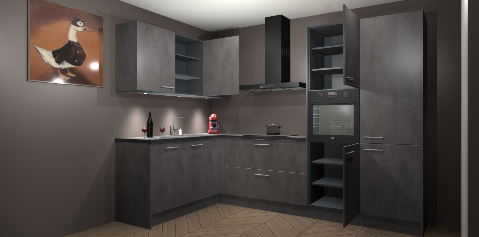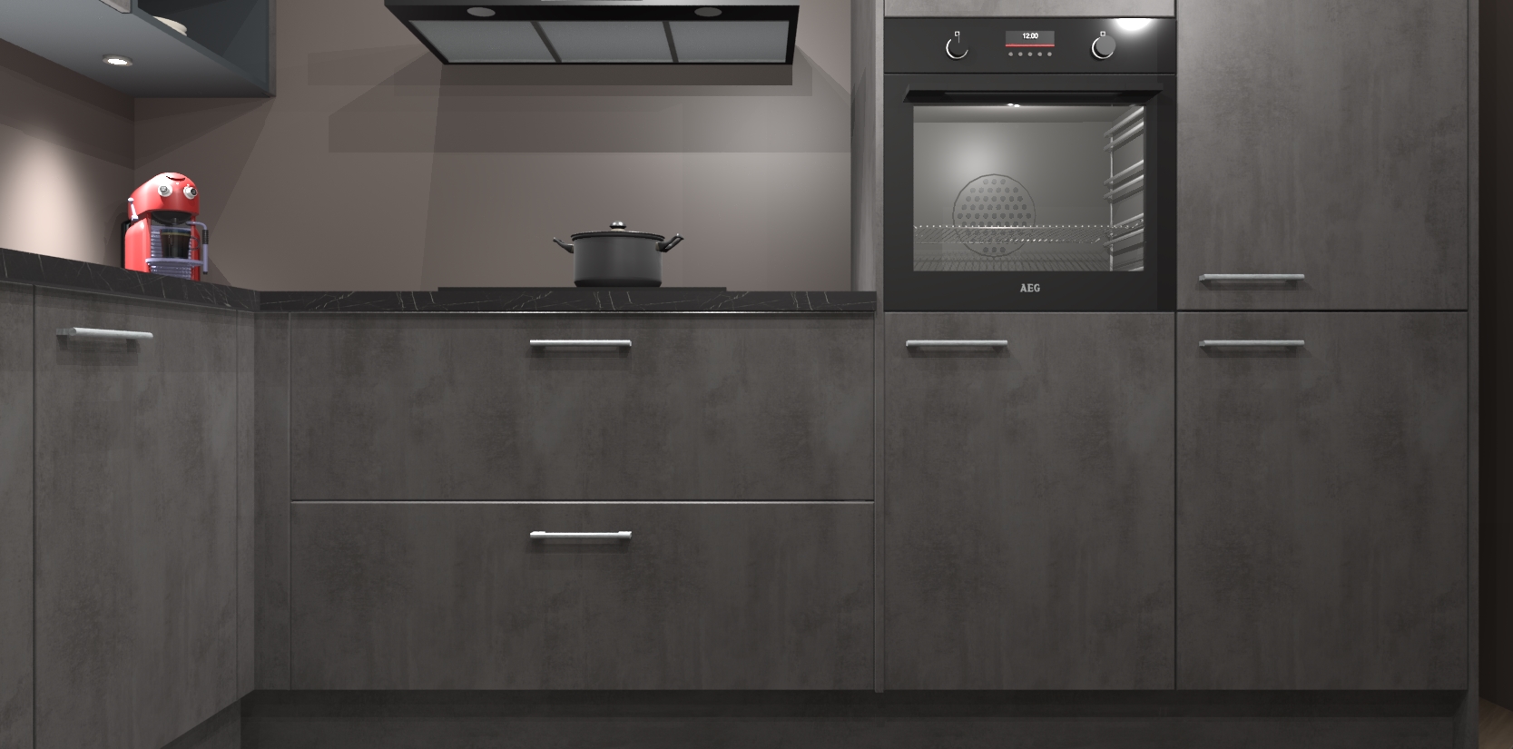 De Beton Antraciet keuken Cognac gaat alleen maar om de beste keukenervaring. Kies gewoon de beste apparatuur en ongeëvenaarde Duitse constructie die u thuis wilt hebben en verander uw huiskamer hartelijkheid meteen in professionaliteit. Laat de toon weten dat u gemakkelijk kan genieten van alle luxe die u verdiend? Bestel nu de Beton Antraciet keuken Cognac voor bij u thuis!