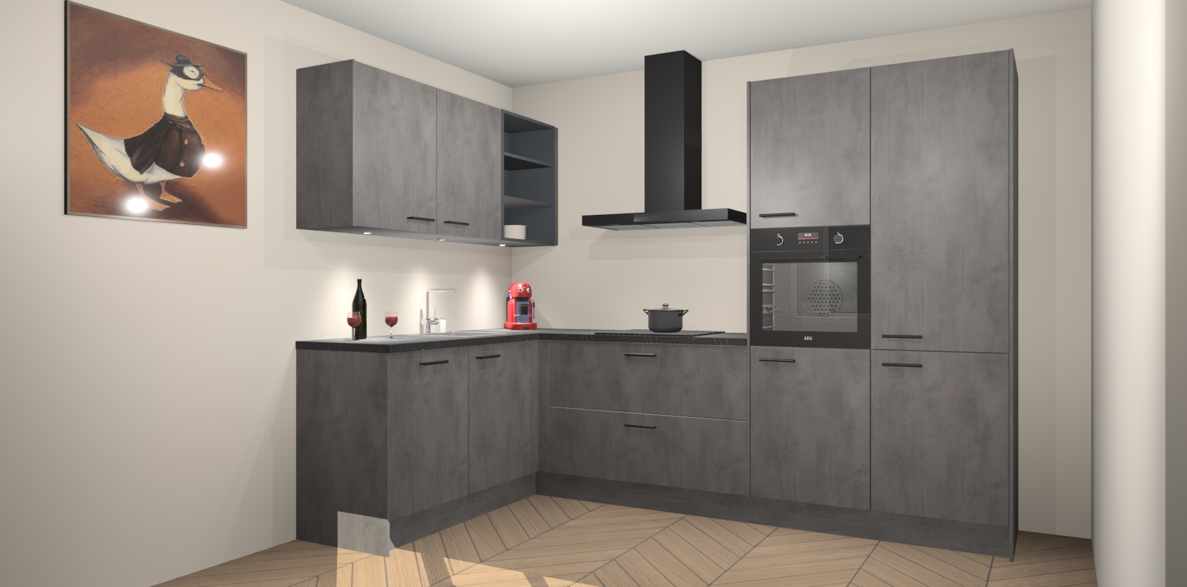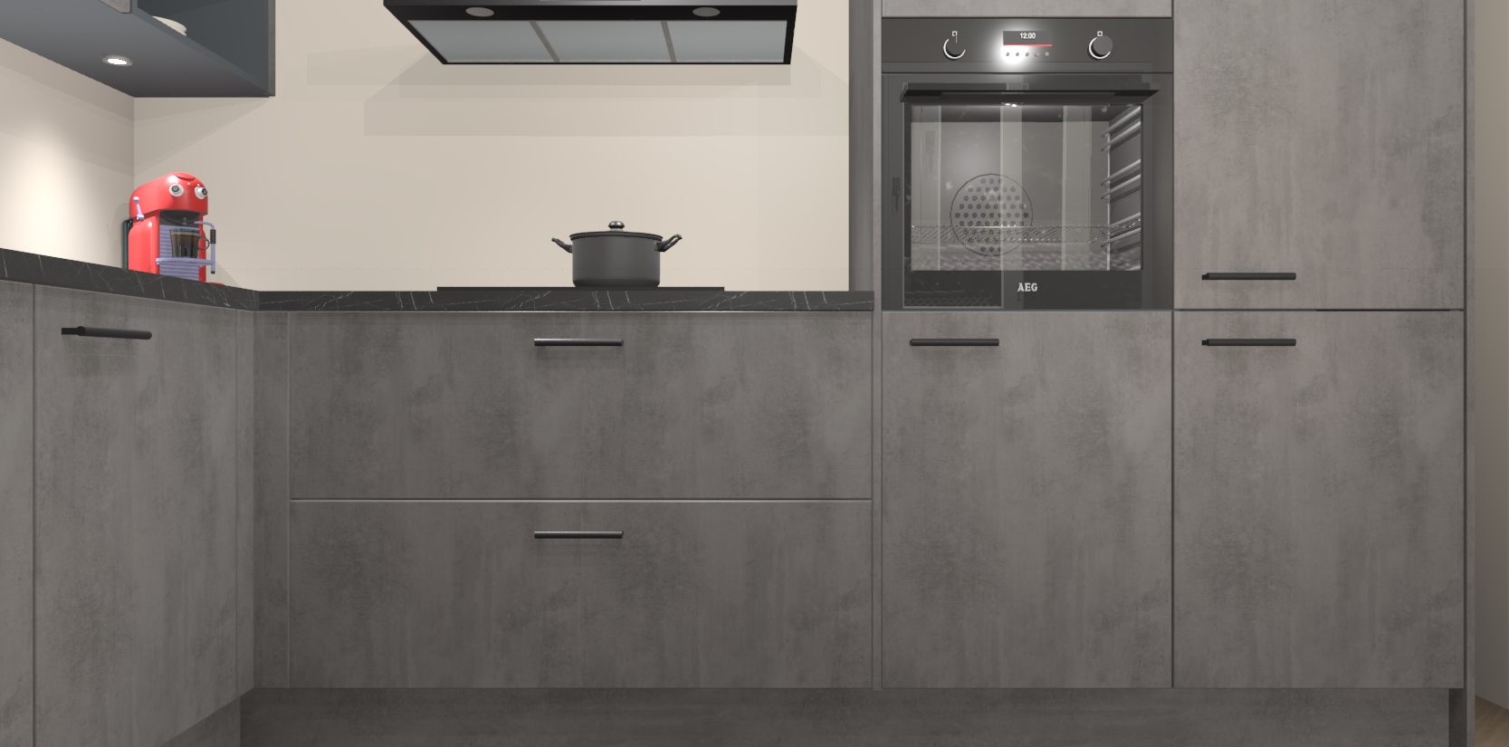 De Beton Antraciet keuken Cognac is een adembenemend ontwerp met een modern en tijdloos uiterlijk. Deze luxe keuken straalt echt aristocratisch uit, waardoor uw koken plezieriger zal worden! Het prachtige design begint bij de hoekkeuken, wat perfect past bij elk type interieur. Bovendien bevat deze hoogwaardige set vijf inbouwapparaten - van oven tot koelkast - die via bestelling naar AEG geüpgraded kunnen worden!