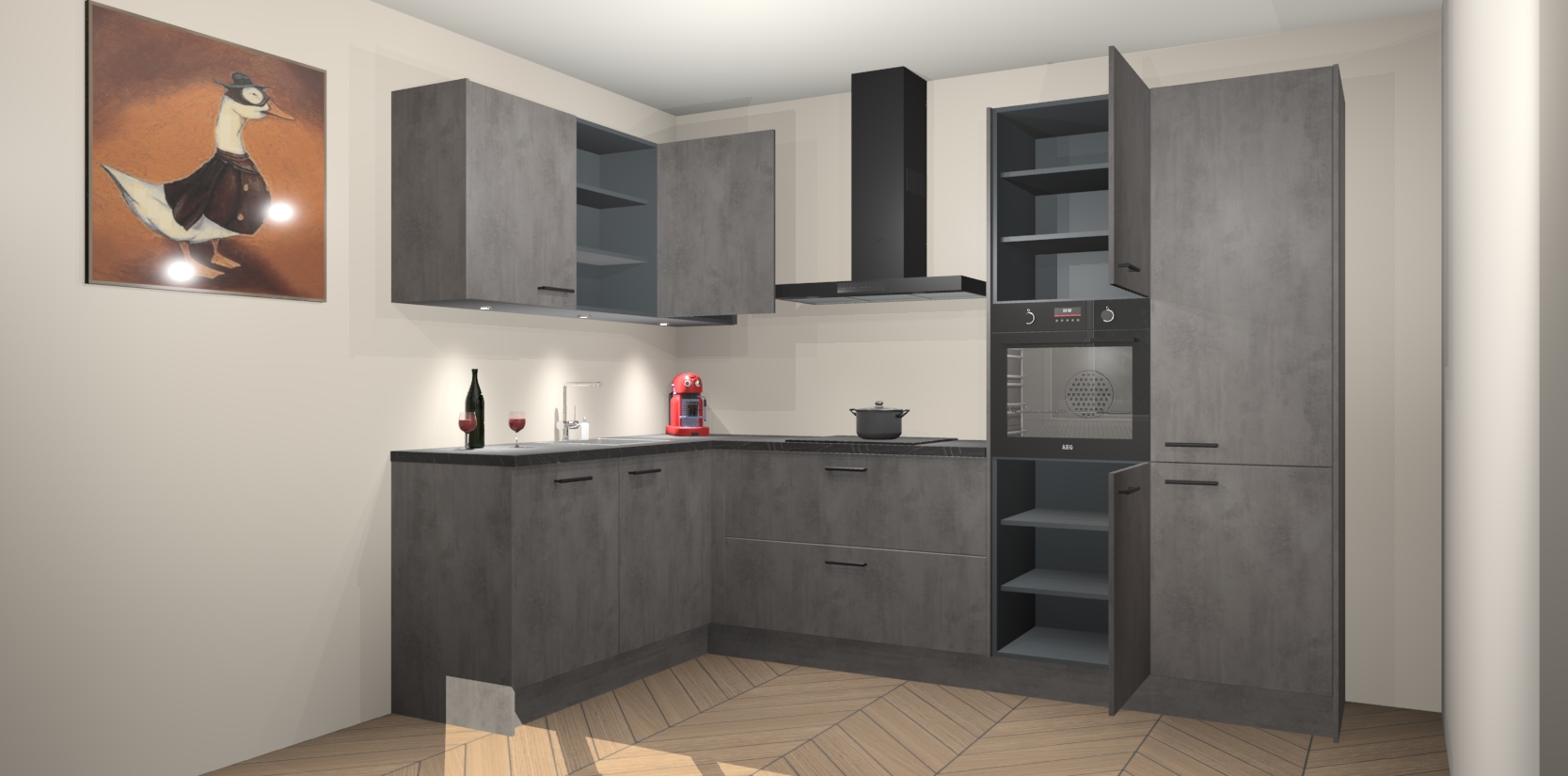 De Beton Antraciet keuken Cognac gaat alleen maar om de beste keukenervaring. Kies gewoon de beste apparatuur en ongeëvenaarde Duitse constructie die u thuis wilt hebben en verander uw huiskamer hartelijkheid meteen in professionaliteit. Laat de toon weten dat u gemakkelijk kan genieten van alle luxe die u verdiend? Bestel nu de Beton Antraciet keuken Cognac voor bij u thuis!