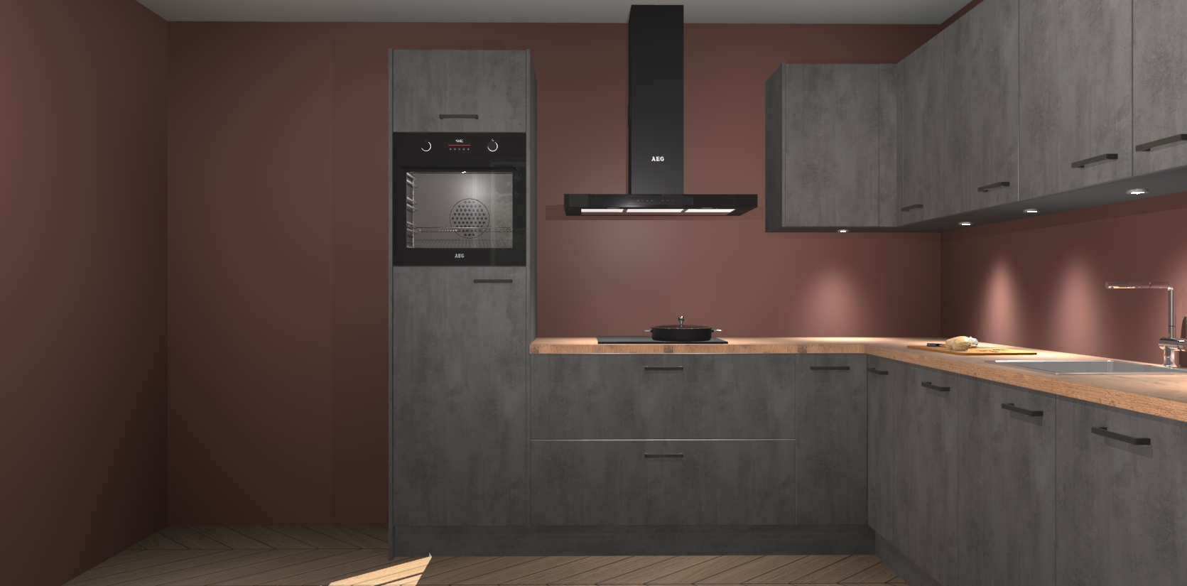 De Beton Antraciet keuken Debar is uitgerust met vijf inbouwapparaten die elke kooktaak handig en efficiënt maken. Een oven, inductiekookplaat, afzuigkap, vaatwasser en koelkast zijn standaard, maar kunnen na bestelling eenvoudig worden geupgrade naar AEG. Profiteer vervolgens van de softclose deuren voor snelle toegang en geruisloze toegang.