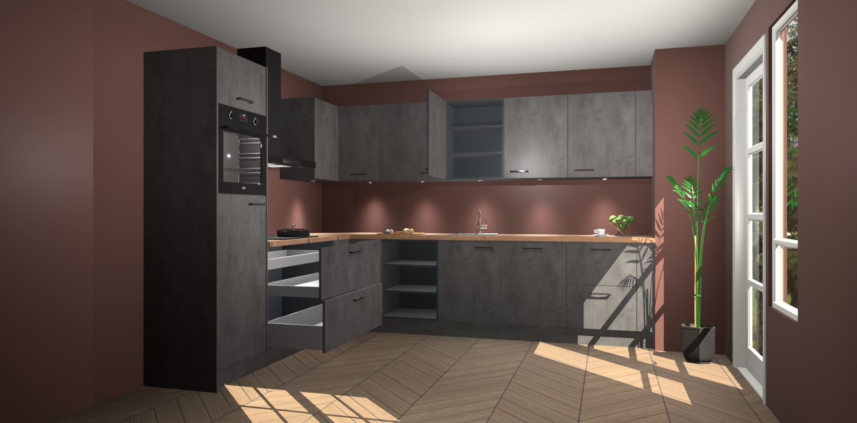 Als u op zoek bent naar de perfecte keuken om uw huis mee op te fleuren, zoek dan niet verder dan de Beton Antraciet keuken Debar. Deze prachtige hoekkeuken straalt warmte en luxe uit met een modern maar geraffineerd design. Maak u nooit meer zorgen of u wel genoeg opbergruimte heeft; dit meubel biedt voldoende opbergruimte om al uw keukenbenodigdheden binnen handbereik te houden.