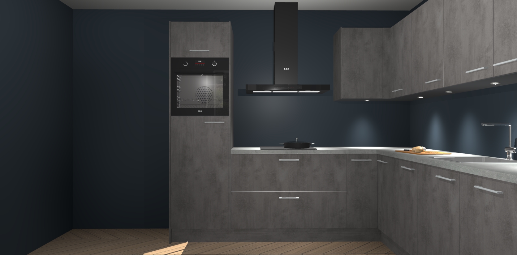 De Beton Antraciet keuken Debar is uitgerust met vijf inbouwapparaten die elke kooktaak handig en efficiënt maken. Een oven, inductiekookplaat, afzuigkap, vaatwasser en koelkast zijn standaard, maar kunnen na bestelling eenvoudig worden geupgrade naar AEG. Profiteer vervolgens van de softclose deuren voor snelle toegang en geruisloze toegang.