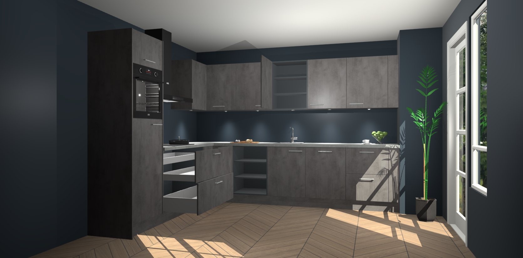 Als u op zoek bent naar de perfecte keuken om uw huis mee op te fleuren, zoek dan niet verder dan de Beton Antraciet keuken Debar. Deze prachtige hoekkeuken straalt warmte en luxe uit met een modern maar geraffineerd design. Maak u nooit meer zorgen of u wel genoeg opbergruimte heeft; dit meubel biedt voldoende opbergruimte om al uw keukenbenodigdheden binnen handbereik te houden.