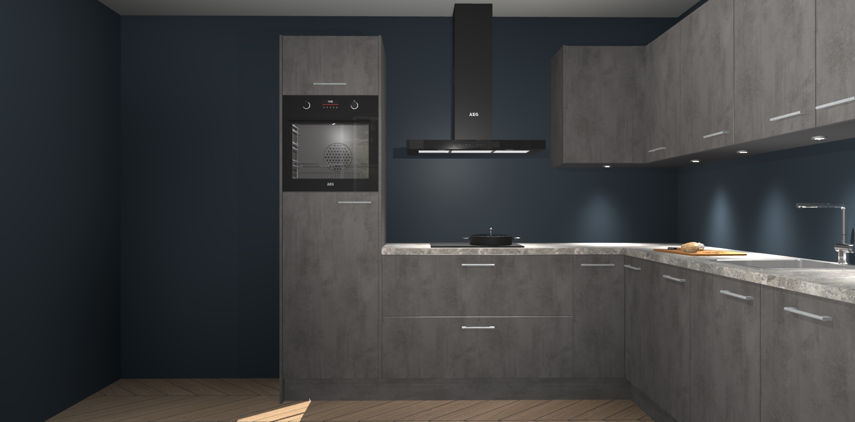 De Beton Antraciet keuken Debar is uitgerust met vijf inbouwapparaten die elke kooktaak handig en efficiënt maken. Een oven, inductiekookplaat, afzuigkap, vaatwasser en koelkast zijn standaard, maar kunnen na bestelling eenvoudig worden geupgrade naar AEG. Profiteer vervolgens van de softclose deuren voor snelle toegang en geruisloze toegang.