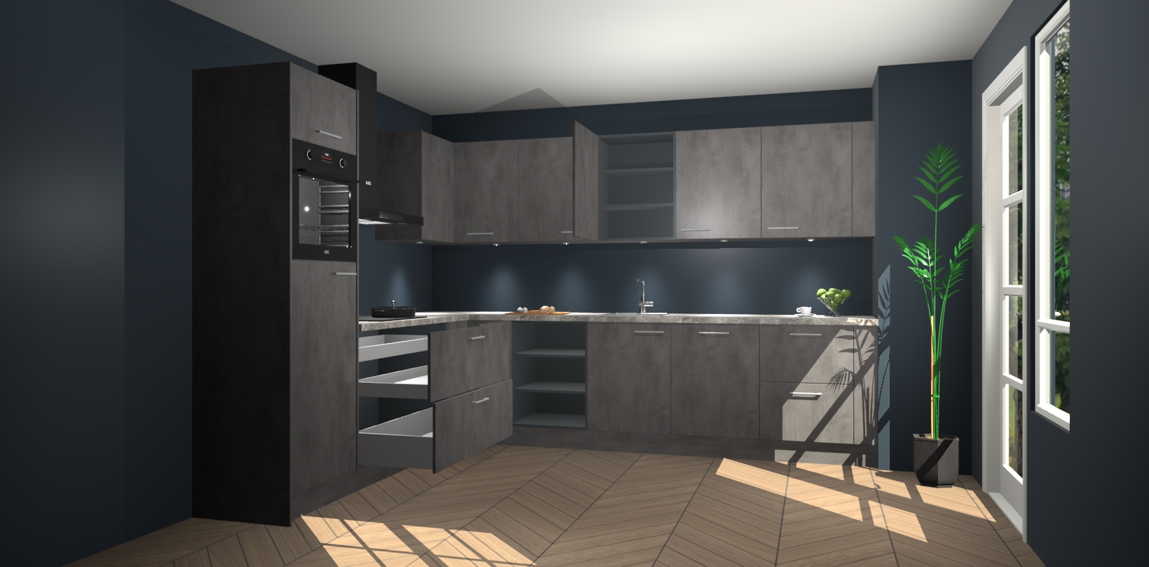 Als u op zoek bent naar de perfecte keuken om uw huis mee op te fleuren, zoek dan niet verder dan de Beton Antraciet keuken Debar. Deze prachtige hoekkeuken straalt warmte en luxe uit met een modern maar geraffineerd design. Maak u nooit meer zorgen of u wel genoeg opbergruimte heeft; dit meubel biedt voldoende opbergruimte om al uw keukenbenodigdheden binnen handbereik te houden.