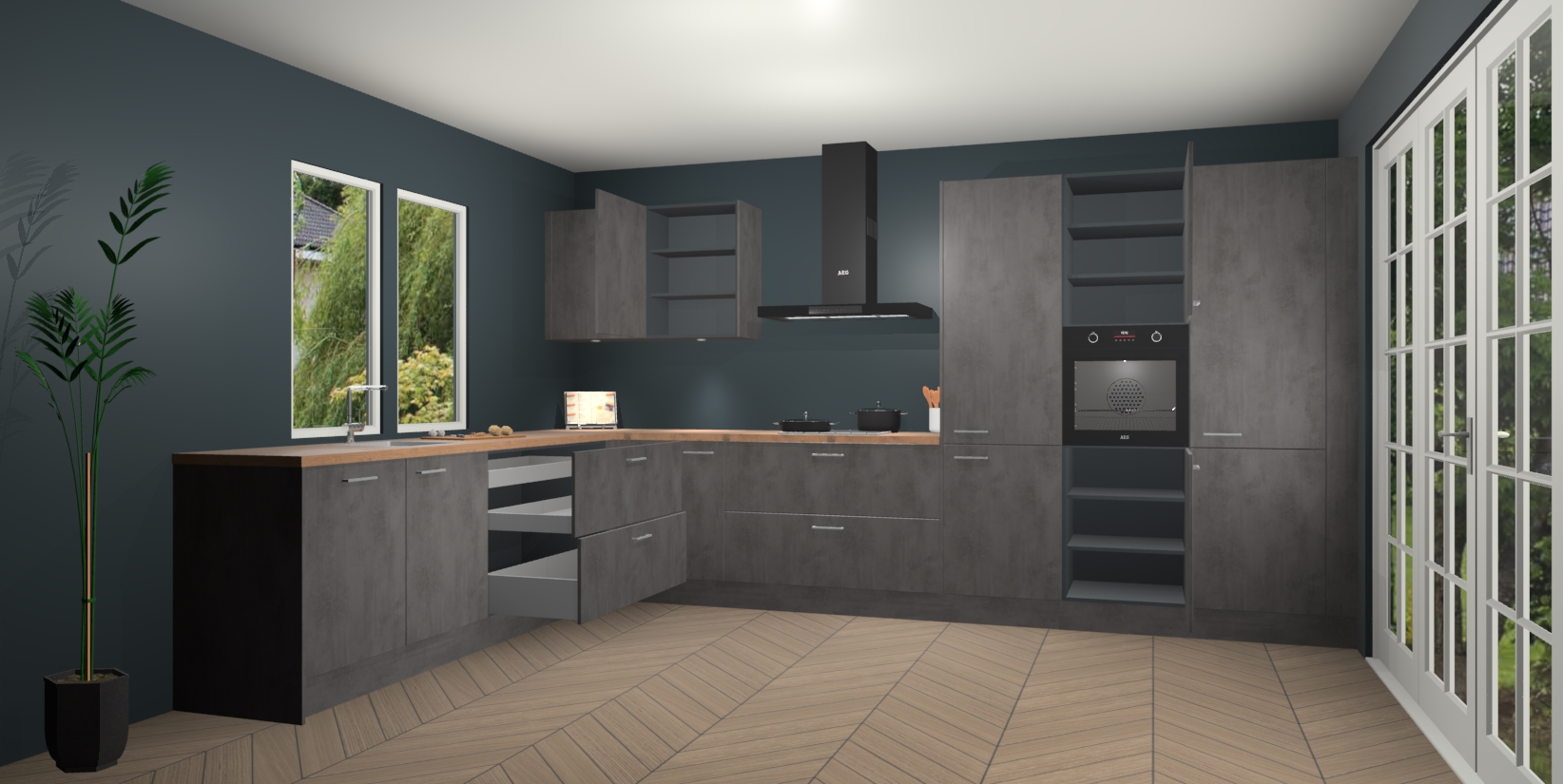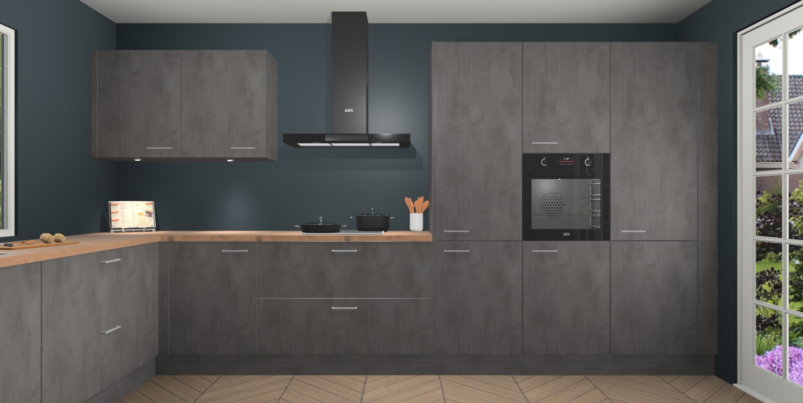 Kom dichtbij de perfecte keuken van uw dromen met de Beton Antraciet keuken Debrecen. Met een prachtige houtlook en eigentijds ontwerp, straalt deze keuken warmte en sfeer uit. Of u nu liefhebber bent van traditionele of moderne stijlen, er is genoeg ruimte om aan al uw behoeften te voldoen.