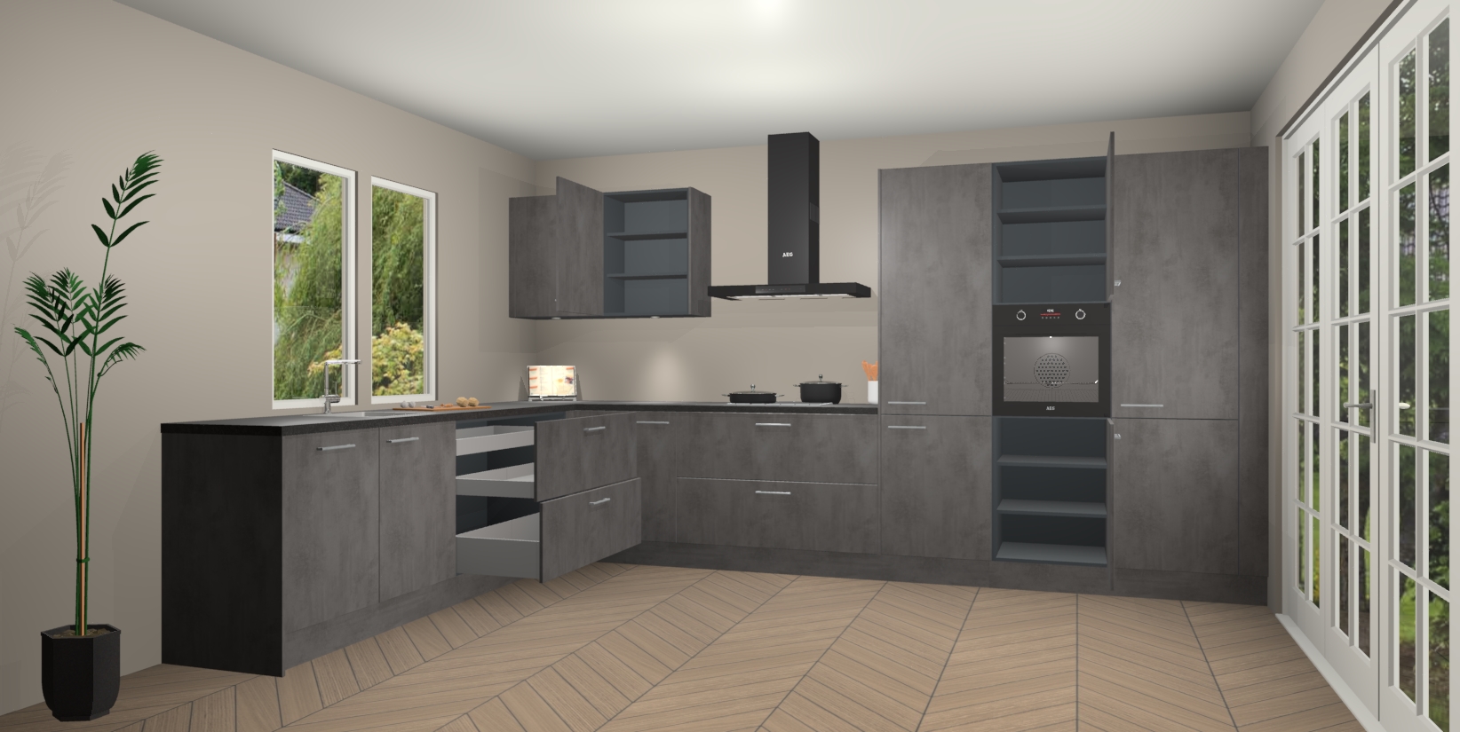 Kom dichtbij de perfecte keuken van uw dromen met de Beton Antraciet keuken Debrecen. Met een prachtige houtlook en eigentijds ontwerp, straalt deze keuken warmte en sfeer uit. Of u nu liefhebber bent van traditionele of moderne stijlen, er is genoeg ruimte om aan al uw behoeften te voldoen.