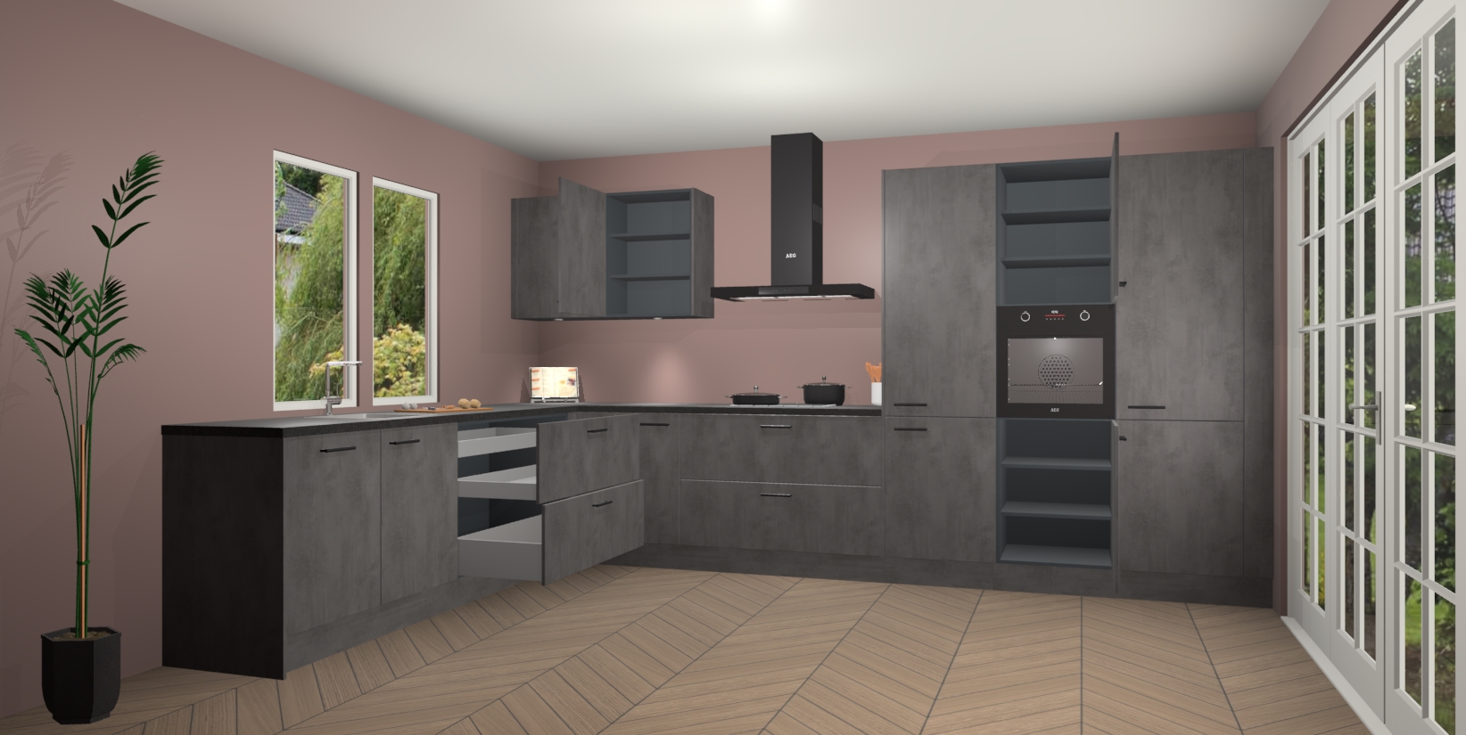 Kom dichtbij de perfecte keuken van uw dromen met de Beton Antraciet keuken Debrecen. Met een prachtige houtlook en eigentijds ontwerp, straalt deze keuken warmte en sfeer uit. Of u nu liefhebber bent van traditionele of moderne stijlen, er is genoeg ruimte om aan al uw behoeften te voldoen.