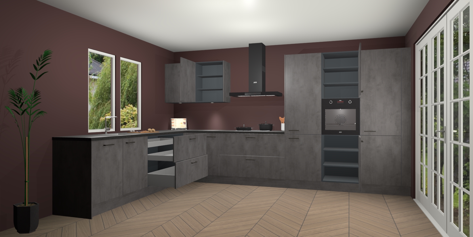 Heeft u nog apparatuur nodig? Geen probleem: de Beton Antraciet keuken Debrecen bevat vijf ingebouwde apparaten - een oven, inductiekookplaat, afzuigkap, vaatwasser en koelkast - die gemakkelijk kunnen worden bijgewerkt naar AEG na bestelling. En als dat nog niet genoeg is; onze kasten worden pre-geassembleerd geleverd en zijn verkrijgbaar tegen een vastgeroeste lage prijs! U hoeft nooit meer te zoeken naar goede kwaliteit en service want onze producten hebben echt Duitse kwaliteit.