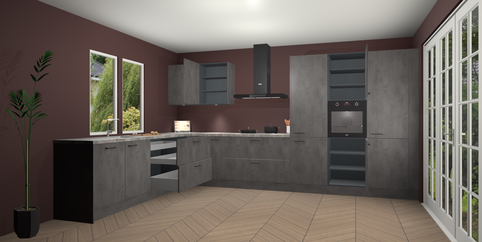 Heeft u nog apparatuur nodig? Geen probleem: de Beton Antraciet keuken Debrecen bevat vijf ingebouwde apparaten - een oven, inductiekookplaat, afzuigkap, vaatwasser en koelkast - die gemakkelijk kunnen worden bijgewerkt naar AEG na bestelling. En als dat nog niet genoeg is; onze kasten worden pre-geassembleerd geleverd en zijn verkrijgbaar tegen een vastgeroeste lage prijs! U hoeft nooit meer te zoeken naar goede kwaliteit en service want onze producten hebben echt Duitse kwaliteit.