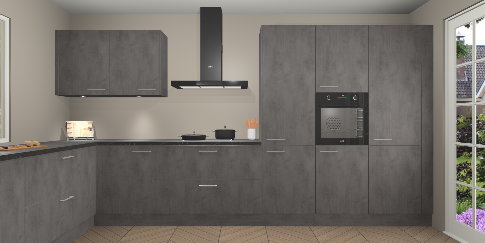 Heeft u nog apparatuur nodig? Geen probleem: de Beton Antraciet keuken Debrecen bevat vijf ingebouwde apparaten - een oven, inductiekookplaat, afzuigkap, vaatwasser en koelkast - die gemakkelijk kunnen worden bijgewerkt naar AEG na bestelling. En als dat nog niet genoeg is; onze kasten worden pre-geassembleerd geleverd en zijn verkrijgbaar tegen een vastgeroeste lage prijs! U hoeft nooit meer te zoeken naar goede kwaliteit en service want onze producten hebben echt Duitse kwaliteit.