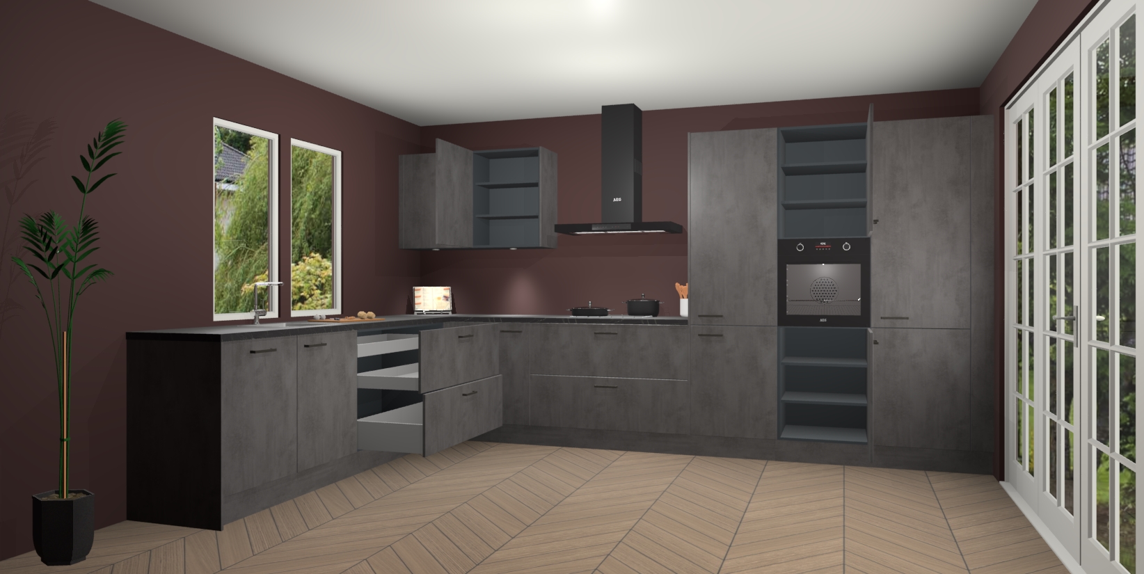 Kom dichtbij de perfecte keuken van uw dromen met de Beton Antraciet keuken Debrecen. Met een prachtige houtlook en eigentijds ontwerp, straalt deze keuken warmte en sfeer uit. Of u nu liefhebber bent van traditionele of moderne stijlen, er is genoeg ruimte om aan al uw behoeften te voldoen.