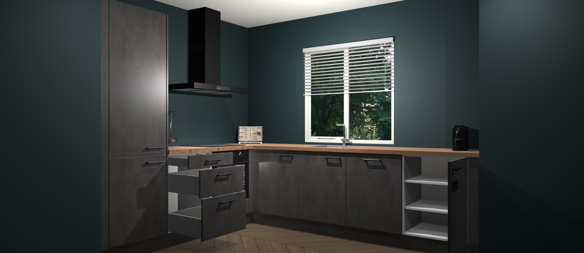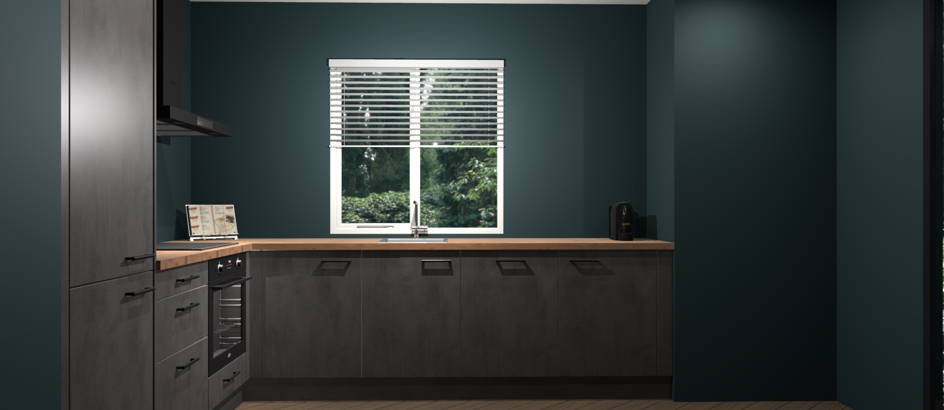 Met de Beton Antraciet keuken Doha Maakt u van uw keuken het pronkstuk van uw huis. Stijlvol en toch praktisch, de nieuwste look voor wie meer waarde en charme aan zijn huis wil toevoegen. Met prachtige zwarte handgrepen die zich lenen voor een klassieke stijlbron, zal u niet teleurgesteld zijn in het resultaat. De soft-close deurscharnieren geven een gevoel van luxe omdat ze zachtjes bewegen zonder storende of krakende geluiden te veroorzaken.