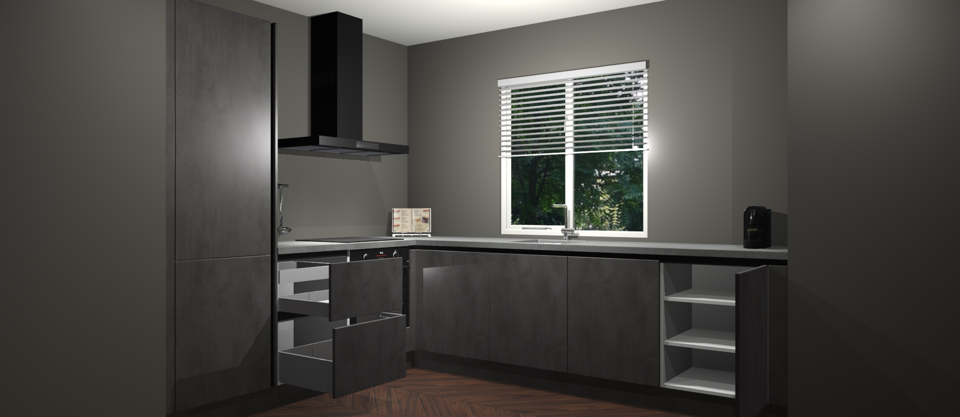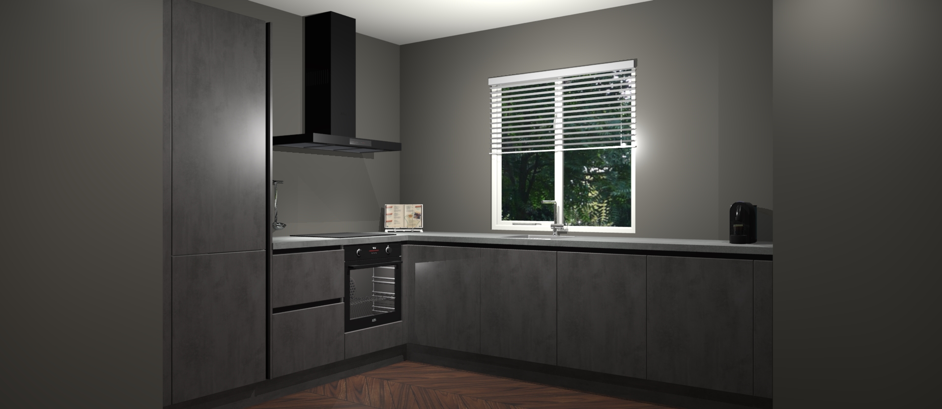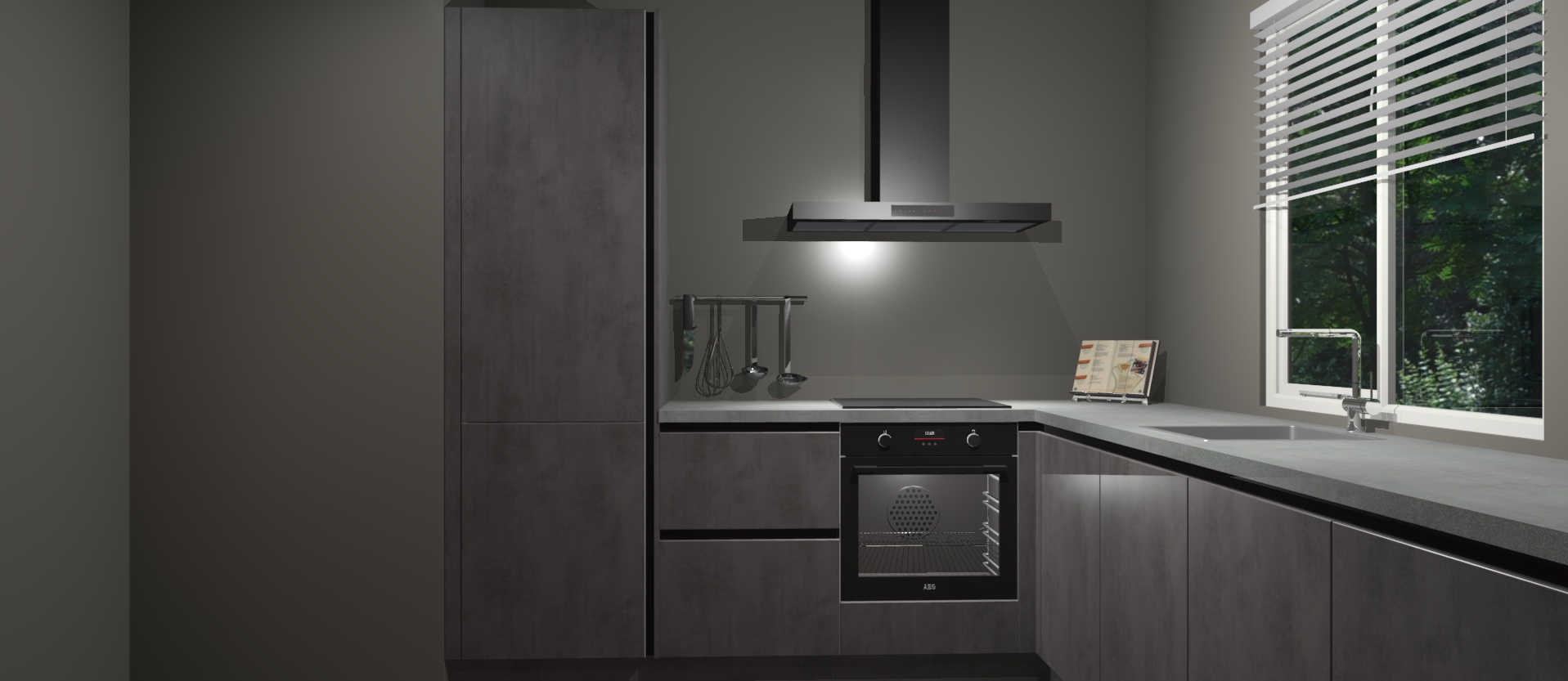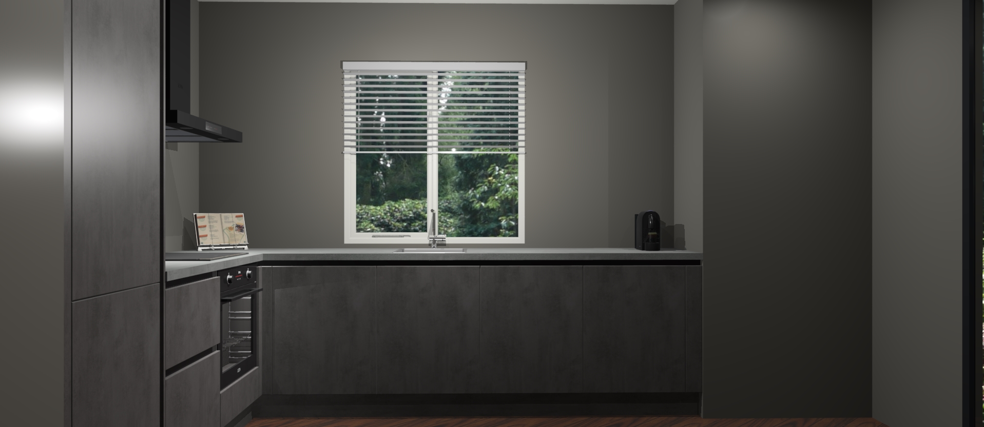 Maak kennis met de Beton Antraciet keuken Doha - de perfecte aanvulling voor uw moderne keuken! Ervaar tijdloos design, elegantie en een chique uitstraling met onze zwarte handgrepen, soft-close deuren en veel opbergruimte. Dit alles wordt aangeboden tegen een vaste lage prijs voor ongeëvenaarde Duitse keukenkwaliteit!