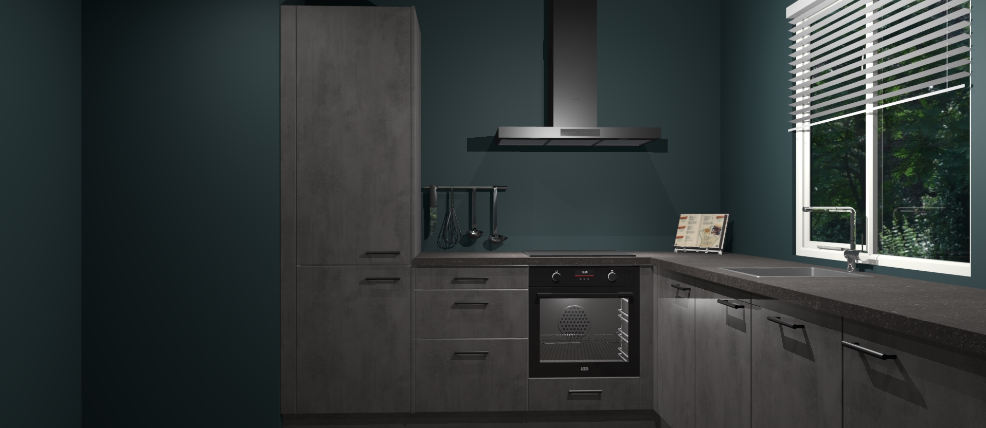 Maak kennis met de Beton Antraciet keuken Doha - de perfecte aanvulling voor uw moderne keuken! Ervaar tijdloos design, elegantie en een chique uitstraling met onze zwarte handgrepen, soft-close deuren en veel opbergruimte. Dit alles wordt aangeboden tegen een vaste lage prijs voor ongeëvenaarde Duitse keukenkwaliteit!